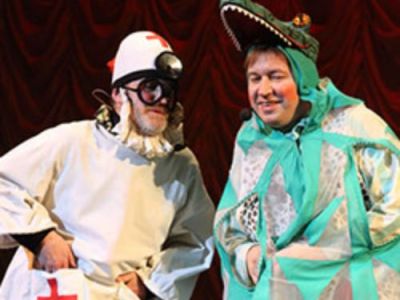 В сказках Чуковского столько животных, птиц и других существ, что не хватит артистов в театре, чтобы всех их сыграть. Поэтому мы прямо на глазах у зрителей переодеваемся в костюмы персонажей сказок Чуковского. А костюмы эти растут у нас на сцене на чудо-дереве. Это — спектакль-клоунада, а мы все — клоуны. Зрители говорят, что наш Айболит смешной, а Бармалей вовсе не страшный, а вполне симпатичный разбойник. Если вы знаете песенку «Чижик-пыжик», то из зала поможете нам спеть маленькую фугу на эту тему («Тараканище»).