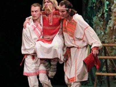 Как во стольном городе, да жил премудрый царь о трех сынах, и послал тот царь сынов своих по свету за златою птицею о золотых перах. Воевал ту птицу младший брат Иван, да не только птицу, но и коня златогривого и Елену Прекрасную. Побывал он и в царстве Долмата, и во дворце Афрона. И везде спутником верным был его друг — могучий Серый Волк. Скоро сказка сказывается, да не скоро дело делается. Есть на свете и зависть, и злоба. А победит ли дружба и верность, и сам не знаю, знаю только, что без вашей помощи трудно будет Серому Волку победить и Змея лютого, и жадных завистников. Ежели придете, и песен наслушаетесь, и на восточных красавиц насмотритесь, и доброе дело сделаете, а заодно и себя порадуете. А смотреть всем можно и тому, кто к оружию интерес имеет, и тому, кому песни слух ласкают, танцы глаз радуют. И малым ребятам, и убеленным сединами мудрецам. Я там был, ноги сами в пляс пошли — не остановишь! А мед да пиво — вам оставил!