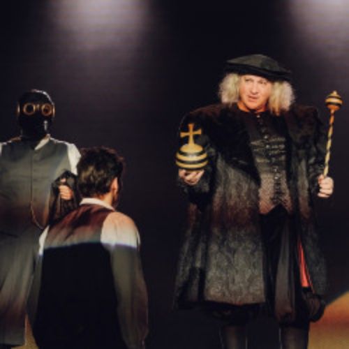 В спектакле мы увидим хрестоматийный сюжет глазами двух второстепенных персонажей — приятелей Гамлета по университету: Розенкранца и Гильденстерна. Их позвали, чтобы они по-дружески выведали у Гамлета причину его странного поведения. У Шекспира Розенкранц и Гильденстерн — предатели. В нашем спектакле это еще и несчастные люди, не понимающие, как они могли попасть в такой переплет, и не имеющие сил сопротивляться судьбе. Это два обычных и даже заурядных человека, но только они выглядят нормальными людьми, в то время, как все остальные персонажи шекспировской трагедии предстают одержимыми безумцами. Пьеса написана в 1966 г., а перевел ее на русский язык сам Иосиф Бродский.