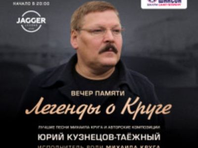 Концерт Юрия Кузнецова-Таёжного это всегда интересное и нестандартное событие! Юрий не только исполнит песни Михаила Круга, но и познакомит публику со своим творчеством. На концерте прозвучат самые яркие песни и композиции, в числе которых «Голуби» и «Омуты» — песня, которая была удостоена премии «Шансон года» в Государственном Кремлёвском Дворце!