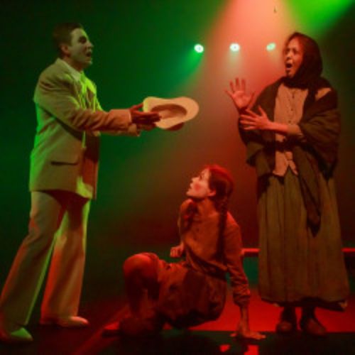 Персонажи пьесы Александра Островского воплощаются на сцене через масочный, гротесковый способ существования актёров, вокальную партитуру и хореографию. Текст автора воспроизводится актёром с определенной скоростью, тембром, характером и превращается в вокальную партию, которая сводится с музыкой и репликами других персонажей в монолитную звуковую конструкцию. Всё это помогает перевести пьесу на театральный язык и погрузить зрителя в мир Островского.