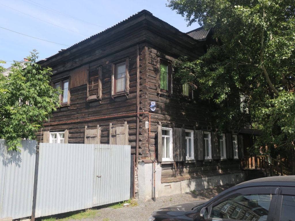 1. Градостроительная характеристика.Здание расположено в исторической части города Барнаула, вдоль красной линии улицы Интернациональной.2. Объемно - пространственное решение здания.Двухэтажный прямоугольный в плане дом с четырехскатной крышей, по боковому северо-восточному фасаду имеет пристроенный объем лестничной клетки, из которого устроен парадный вход с красной линии улицы.3. Конструктивные особенности здания.Бревенчатые стены рублены в лапу, вальмовая крыша из листового материала.4. Декоративное оформление фасадов.5. Композиция главного фасада состоит из 5-ти осей одинарных оконных проемов, расположенных с равным шагом, по центральной оси устроен треугольный щипец. В его Ампане размещается круглое слуховое окно, обрамленное пропильной накладной резьбой. Все окна первого этажа заключены в рамочные наличники без декора, дополнены простыми деревянными двухстворчатыми ставнями. Юго-западный фасад в четыре оконные оси имеет одиночные и спаренные окна, которые обрамлены рамочными наличниками. У всех оконных проемов Т-образное заполнение с фрамугой.Вертикаль парадного входа в уровне первого этажа обозначена парой филенчатых двупольных дверей с накладным декором растительного рисунка и сдвоенным окном - в уровне второго этажа. Пристроенный тамбур венчает аттик с тянутым обрамлением. Навес крыльца лучковой формы на деревянных фигурных столбиках.Объект культурного наследия является примером городской деревянной рядовой застройки начала XX века.