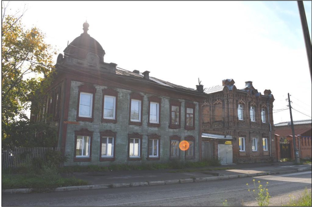 1. Градостроительная характеристика.Здание расположено в исторической части города, главным северо-западным фасадом ориентировано вдоль красной линии застройки улицы Льва Толстого. 2. Объёмно-пространственное решение и габариты здания.Двухэтажное здание Г-образной в плане формы, состоит из двух прямоугольных в плане объемов. Небольшой объем главным северо-западным фасадом размещен вдоль улицы Льва Толстого, к нему примыкает со стороны двора объем, вытянутый вглубь участка. Вход в помещения организован со стороны северо-восточного фасада.3. Конструктивные особенности здания.Стены и декоративные элементы выполнены из красного кирпича лицевой кладки. Конструкция крыши чердачная со слуховыми окнами, кровля из листового металла, водосток организованный.4. Декоративное оформление фасадов.Северо-восточный и северо-западный фасады имеют идентичный богатый декор с применением усложненных декоративных элементов кирпичной кладки. Горизонтальное членение главных фасадов подчеркнуто карнизом и фризом, дополненным рядом сухариков. Первый и второй этажи разделяет сложной формы двойной междуэтажный пояс, декорированный нишами с овальными накладными элементами, по нижней части пояса проходит ряд зубчиков. Углы здания фланкированы рустованными лопатками с завершения-ми в уровне междуэтажного пояса в виде трезубца. На втором этаже лопатки продолжены круглыми полуколоннами с капителями, объединенными в уровне карниза стрельчатыми арками, завершены парапетными надкарнизными столбиками с фронтонами с четырех сторон. Крайняя левая ось северо-западного фасада объединена в общую композицию с крайней правой осью северо-восточного фасада аналогичными полуколоннами.Северо-западный фасад, ориентированный на улицу, выполнен в три оси оконных проемов. По центральной оси фасад завершен фигурным ат-тиком, который обрамлен профилированной тягой и имеет криволинейное очертание с навершием. В тимпане аттика небольшое стрельчатое окно в наличнике с криволинейным фартуком.Оконные проемы прямоугольные с Т-образной расстекловкой. В уровне первого этажа окна более высокие, декорированы прямыми сандриками, нижняя часть которых завершается остроконечными элементами. На средней оси северо-западного фасада проем имеет полуналичник с арочным подвышением над средней частью, завершенный полочками.Окна второго этажа декорированы фигурными полуналичниками с криволинейными разорванными завершениями в верхней части фронтона. Северо-восточный фасад выполнен в семь осей оконных проемов, включая ризалит в две оси правого фланга. На первом этаже по пятой оси организован вход в здание. Юго-западный и юго-восточный фасады декоративного убранства не имеют.Общая оценка общественной, научно-исторической и художествен-ной значимости памятникаОбъект культурного наследия является характерным для городской застройки Сибири купеческим жилым домом начала ХХ века с оригинальными декоративными элементами, выполненными в формах эклектики.