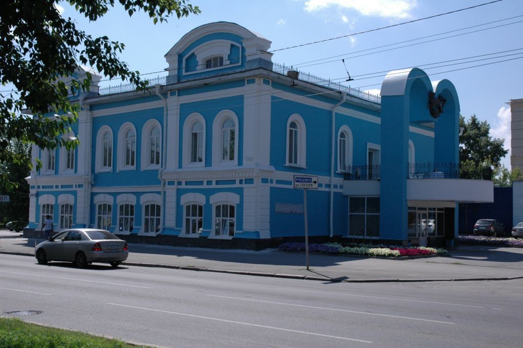 1.Градостроительная характеристика: 1.1.Месторасположение: по красной линии застройки на пересечении просп. Ленина и ул. Гоголя. 2.Объемно-пространственное решение: 2.1.Габариты здания:двухэтажное здание, в плане близкое к квадрату без учета поздней пристройки по северо-западному фасаду;2.2.Композиции главных фасадов: северо-восточный фасад (по просп. Ленина) – симметричная композиция включает фланги в две оконные оси каждый, выделенные ризалитами и завершенные аттиками лучковой формы; юго-восточный фасад (по ул. Гоголя) – симметричная композиция включает выделенную в виде ризалита центральную часть в две оконные оси проемов, завершенную аттиком лучковой формы аналогично акцентам северо-восточного фасада.2.3.Планировочная схема: в конструкциях капитальных стен.3.Конструктивные особенности здания: 3.1.Стены:керамический кирпич с кирпичными клинчатыми перемычками. 3.2.Перекрытия:межэтажные и чердачные перекрытия – плоские;в угловом помещении первого этажа северо-восточной части здания –кирпичный коробовый свод. 3.3.Крыша:стропильная система; кровля из листового металла; водосток организованный с помощью водосточных труб.4.Декоративное оформление фасадов 4.1.Форма оконных проемов: окна первого этажа лучковой формы; окна второго этажа высокие с полуциркульными арками.4.2.Характер декоративного оформления фасадов: кирпичный декор оштукатурен, в том числе с помощью штукатурных тянутых профилей.4.3.Общие элементы декоративного оформления фасадов: сильно выступающий гладкий цоколь под окнами первого этажа, завершенный обратной выкружкой и раскрепованный в местах ризалитов; простой большого выноса карниз и фриз, отделенный профилированным поясом и дополненный филенками в местах пилястр; оформление оконных проемов первого этажа – выделенные из плоскости стены перемычки с выступающими замковыми камнями; оформление оконных проемов второго этажа – широкие штукатурные наличники тянутой формы.4.4.Элементы декоративного оформления главных фасадов (по просп. Ленина, по ул. Гоголя): междуэтажный карниз под окнами второго этажа, дополненный сухариками и филенчатым поясом, прерывающийся в центральных частях фасадов; лопатки, устроенные по углам здания и флангам ризалитов, – рустованные в уровне первого этажа, гладкие с фаской в уровне второго этажа. 4.5.Элементы декоративного оформления северо-восточного, юго-восточного и юго-западного фасадов:аттики в уровне кровли, завершенные архивольтами (штукатурными профилями); элементы оформления аттиков: фланкирующие профилированные столбики, неглубокие ниши с обрамлением, устроенные по центрам аттиков, лучковые слуховые окна в наличниках с выделенными массивными перемычками.4.6.Элементы декоративного оформления северо-западного фасада: междуэтажный карниз под окнами второго этажа, дополненный сухариками и филенчатым поясом; лопатки по углам здания, рустованные в уровне первого этажа и гладкие в уровне второго этажа.4.7.Цветовое решение фасадов: декоративные элементы выделены белым цветом. 4.8.Рисунок оконного заполнения: расстекловка окон первого этажа – шестичастная с выделением фрамуг;расстекловка окон второго этажа – восьмичастная с выделением фрамуг.