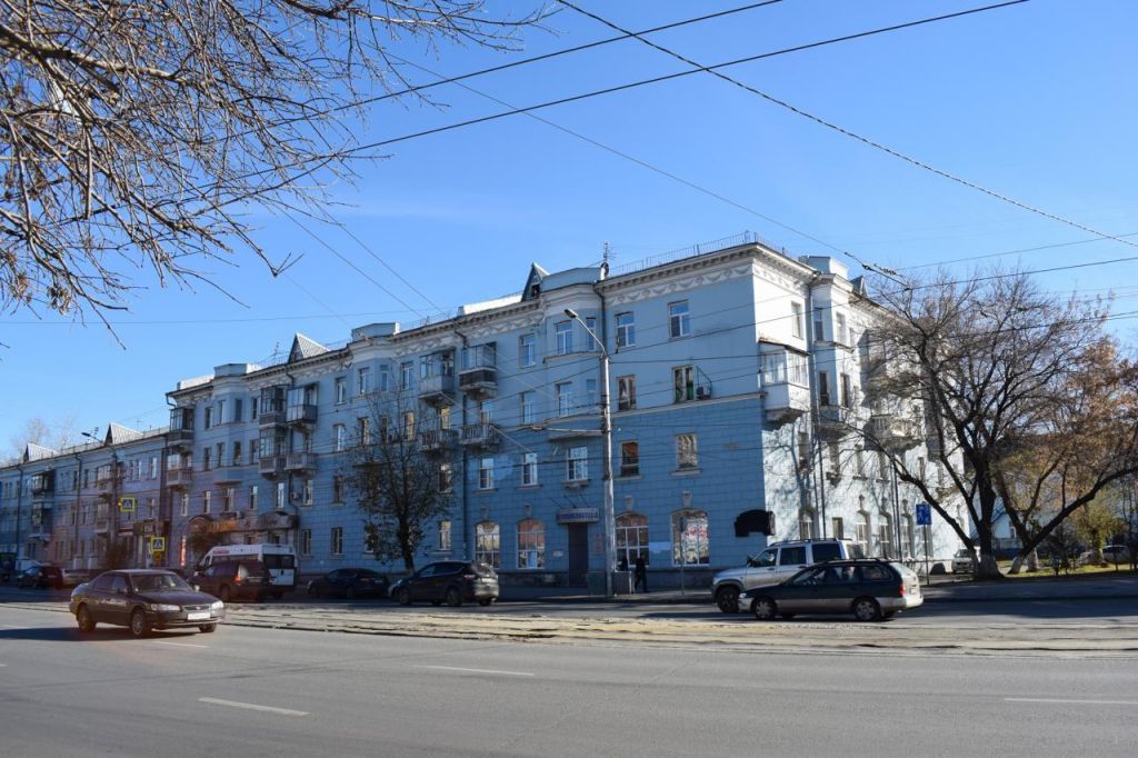 1. Градостроительная характеристика. Здание расположено вдоль красной линии проспекта Строителей.2. Объемно-пространственное решение. Кирпичное здание с подвалом, Г-образной формы в плане, состоящее из двух объемов – четырехэтажного и трехэтажного. Представляет собой многоквартирный жилой дом с помещениями общественного назначения на первом этаже, с входами, организованными с красной линии проспекта. Вход в жилые помещения осуществляется со стороны дворового фасада. 3. Конструктивные особенности. Стены кирпичные, оштукатуренные. Перекрытия над подвалом и лестничные площадки из монолитного железобетона. Ступени лестничных маршей наборные, из бетона мозаичного состава. Конструкция крыши чердачная с остроконечными слуховыми окнами, кровля из листового металла, водосток организованный, по краю кровли устроено металлическое ограждение. 4. Композиция и художественное оформление фасадов.Декоративное оформление с помощью штукатурных и лепных элементов имеют преимущественно уличные фасады: оштукатурены и окрашены в голубой гамме с выделением декоративных элементов белым цветом. Плоскость стен третьего и четвертого этажей окрашена в светлой голубой гамме, первого и второго этажей – в более темной, цокольная часть – самая темная с оттенком серого. Горизонтальное членение главного северо-западного и торцевых юго-западного и северо-восточного фасадов подчеркнуто цоколем с валиком, плоскость стен до уровня третьего этажа обработаны квадровым штукатурным рустом. Четырехэтажный объем по уличным фасадам венчает профилированный карниз с лепными модульонами и фриз с лепным орнаментом из чередующихся венков и вазонов, дополненный поясками ионики. На боковом северо-восточном фасаде устроен парапетный треугольный фронтон. За исключением дворовых фасадов, под окнами третьего этажа всей плоскости фасадов, в эркерах под окнами четвертого этажа и по периметру основания проходит профилированный поясок. Композиция четырехэтажного объема северо-западного фасада, обращенного на проспект Строителей, симметрична, выполнена в 15 осей проемов. В основе композиции лежит ритм расставленных по трем осям фасада, в уровне третьего-четвертого этажей, трапециевидных в плане эркеров, увенчанных невысокими аттиками. Между эркерами расположены балконы, поставленные на фигурных лепных кронштейнах в виде волют и имеющие ограждение из бетонных балясин. С правого фланга четырехэтажного объема северо-западного фасада на первом этаже расположено четыре оси проемов витринных окон с лучковым завершением, шестичастной расстекловкой и фрамугами, декорированные лепными замками, в которые включены элементы растительного орнамента. Торцевой юго-западный фасад четырехэтажного объема имеет аналогичное главному северо-западному фасаду декоративное оформление, выполнен в восемь осей оконных проемов. С левого фланга фасада в уровне третьего этажа расположен балкон на лепных кронштейнах в виде волют и с ограждением из бетонных балясин, на первом этаже имеется шесть осей витринных окон с лучковым завершением и лепными замками. Окна второго этажа дополнены подоконными полочками, по осям эркеров – вазонами. Трехэтажный пониженный объем на северо-западном фасаде имеет три оси балконов в уровне второго и третьего этажей, под которыми размещаются 