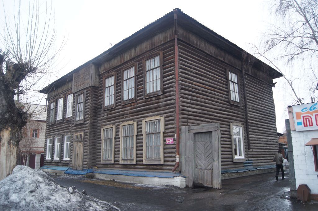 1. Градостроительная характеристика.Здание расположено в исторической части в центре города Камень-на- Оби. Главным северо-восточным фасадом ориентировано вдоль красной линии улицы Ленина. 2. Объемно-планировочное решение здания.Двухэтажное деревянное Г-образной формы в плане здание, крыша чердачная, вальмовая.Центральная ось главного северо-восточного фасада выделена выступающим в плане лестничным блоком, завершенным световым фонарем со ступенчатым наклонным покрытием. Такие же фонари расположены на кровле с северо-западного и юго-восточного фасадов.Планировка дома решена по принципу организации центрального и «черного» входов. В основе плана центральный лестничный блок и дополнительные дворовые входы решаются по обеим сторонам выступающей дворовой части дома. Планировка квартир организована по принципу смежных проходных комнат. 3. Конструктивные особенности.Стены - бревенчатый сруб из тёсаного вручную бревна, рубленный «в лапу». Широкий цоколь - из керамического кирпича, оштукатуренный, окрытие цоколя из листового металла.Межэтажное перекрытие плоское, деревянное по деревянным балкам, оштукатуренное по дранке.Чердачная конструкция крыши - с кровельным материалом из листового металла, включает в себя массивные выносные слуховые окна, расположенные по центральным осям с трех сторон по кровле. 4. Композиция и художественное оформление фасадов.Стены венчают подшивной карниз большого выноса и широкая лента фриза из вертикальной тесовой обшивки.Симметричная композиция главного северо-восточного фасада акцентирована ризалитом в одну ось оконного проема, по обе стороны которого расположено три оси оконных проемов. На первом этаже парадный вход с двухстворчатой филенчатой дверью, имеющий фрамугу с мелкой вертикальной шестичастной расстекловкой. Ризалит акцентирован ступенчатым фронтоном, подчеркнутым профилированным карнизом, с большим полуциркульным окном в тимпане. Аналогичной композицией, но меньших размеров, завершаются боковые северо-западный и юго-восточный фасады. Слуховые окна крупные, с мелкой двадцатидвухчастной расстекловкой.Дворовый юго-западный фасад в пять осей оконных проемов фланкирован двумя входами на фланговых осях под двускатными навесами и треугольными фронтонами с металлической кровлей на кронштейнах. Деревянные двери дворовых фасадов - с глухими полотнами и световой фрамугой, имеющей мелкую вертикальную трехчастную расстекловку. Во втором этаже входные узлы отмечены пониженным расположением окон. Центральная ось фасада акцентирована слуховым прямоугольным окном под двускатной кровлей и небольшим фронтоном.Юго-восточный боковой фасад отмечен двумя осями оконных проемов, северо-западный - в одну ось смещенного к северу оконного проема.Оконные проемы всех фасадов крупные прямоугольные, выполненные в стилистике конструктивизма и модерна. Оформлены рамочными наличниками, имеющими небольшой сандрик и уши в уровне фрамуги, по периметру наличники декорированы накладной рамкой. Деревянные оконные блоки - с двухстворчатыми рамами, поделенными на четыре равные части с фрамугой, имеющей шестичастную вертикальную расстекловку.