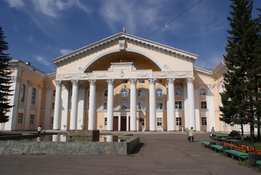 1.Градостроительная характеристика:крупное здание с симметричным объемно-пространственным решением расположено вдоль планировочной оси сквера с отступом от красной линии ул. Горно-Алтайской, между переулками Дружный и Омский;курдонер (небольшая площадь) перед главным фасадом по ул. Горно-Алтайской.2.Объемно-пространственное решение:здание переменной этажности с подвалом состоящее из трех прямоугольных в плане объемов;трехчастная объемно-пространственная композиция здания на основе центрально осевого построения:основной центральный объем переменной этажности (3 -4 этажа) акцентирован по главному фасаду портиком (этажность в месте портика - 4 этажа), в северной части дополнен объемом сценической коробки;симметрично с двух сторон от основного объема - двухэтажные объемы, выступающие по главному фасаду в виде ризалитов, в уровне 2 - 3 этажей в данных объемах организованы залы: актовый (западное крыло) и спортивный (восточное крыло);крылья с основным объемом соединены переходами высотой в 3 этажа.3.Композиции фасадов: симметричная композиция главного фасада:по центру - 8 колонный портик, увенчанный треугольным фронтоном; по центральной оси портика - наружный тамбур парадного входа с тремя высокими дверными проемами;по флангам - выступающие торцы фланкирующих объемов; композиции торцов фланкирующих объемов симметричны; северный фасад основного объема симметричен: ризалит большого выноса по центру фасада высотой 4 этажа; боковые восточный и западный фасады равномерно разбиты вертикалями оконных проемов.4.Декоративное оформление фасадов:оформление фасадов в неоклассических формах с обильным применением штукатурного и лепного декора с использованием советской символики;цветовое решение фасадов в желтой гамме с выделением декоративных элементов белым цветом.5.Элементы декоративного оформления фасадов:5.1.Общие декоративные элементы, устроенные по периметру здания: невысокий цоколь с валиком;прерывающийся межэтажный пояс с зубчиками и иониками; штукатурные карнизы большого выноса с зубчиками и иониками в оформлении, дополненные по центральному портику, северным и боковым фасадам основного объема модульонами, по главному фасаду (за исключением портика) и карнизам крыльев здания лепными элементами;декоративные филенки, оформленные лепными гирляндами, между окнами второго и третьего этажей по главному фасаду и продольным фасадам основного объема;штукатурный руст в уровне первого этажа, небольшой поясок под окнами 1 этажа во фланкирующих объемах здания и по главному фасаду;подоконные филенки и выделенные цветом рустованные перемычки окон 1 этажа.5.2.Элементы оформления центральной части главного фасада: пилястры с коринфскими капителями в каждом простенке главногофасада;8 колон портика круглого сечения с капителями коринфского ордера; две пары колонн квадратного сечения портика со стилизованными коринфскими капителями возле основной стены фасада; треугольный фронтон с аркой в тимпане;оформление арки фронтона декоративным замковым камнем в виде лепного консольного завитка;лепные гирлянды и элементы с символикой видов искусств на фризе портика;оформление центральной части фриза портика возвышением, фланкированным волютообразными элементами, по центру - дата «1963»;перекрытие портика в центральной части в вид