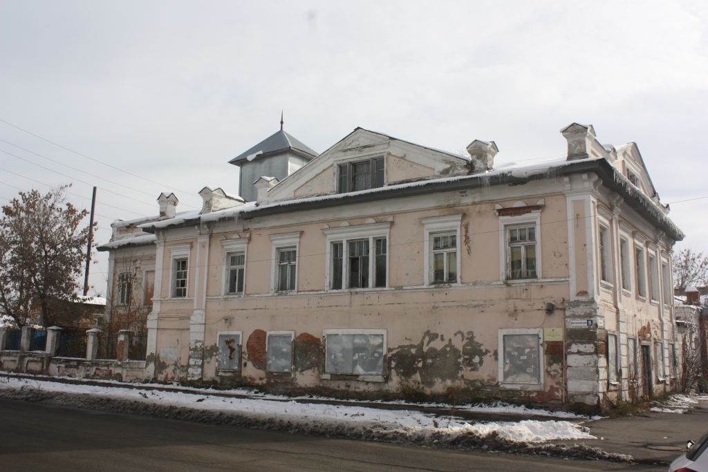 1. Градостроительная характеристика.1.1. Местоположение: здание расположено в исторической части города Бийска, на пересечении пр-кт Сергея Кирова и ул. Динамовской, главным фасадом выходит на красную линию застройки пр-кт Сергея Кирова;формирует угол квартала, являясь одним из основных элементов купеческой усадьбы.2. Объемно-планировочное решение:2.1. Объемно-пространственное решение:двухэтажное с мезонином здание, сложное в плане:основной прямоугольный в плане объем дополнен по северо-восточному торцевому фасаду небольшим объемом аналогичной высоты, размещенным с отступом от красной линии застройки; в основном и примыкающем объемах устроены помещения мезонина, выходящие на все фасады треугольными фронтонами и аттиковыми стенками;к юго-восточным дворовым фасадам данных объемов примыкают одно и двухэтажные постройки вспомогательных помещений, в том числе деревянная галерея в центральной части фасада.2.2. Планировочное решение в конструкциях капитальных стен:продольный коридор с лестничным блоком, по сторонам которого расположены прямоугольные помещения;входной узел по центральной оси юго-западного фасада.3. Оформление фасадов:3.1. Композиции фасадов, разбитые прямоугольными окнами с равным шагом:3.1.1. Главный юго-западный фасад в 5 оконных осей симметричен:фланги в 1 ось выделены пилястрами, продолженными над карнизом аттиковыми стенками и треугольным фронтоном мезонина;по центральной оси – вход, тройное окно в мезонине. 3.1.2. Северо-западный уличный фасад с двухчастной композицией:правый фланг в 6 оконных осей сформирован основным объемом, основная часть которого симметричной композиции в 5 осей, по центральной оси – треугольный фронтон мезонина, тройные оконные проемы, устроенные в уровне 2 этажа и мезонина;по левому флангу основной части – ось лестничного блока, отделенная пилястрой;левый фланг фасада в 3 оси проемов, завершенный аттиковой стенкой, размещен с отступом от красной линии застройки.3.1.3. Северо-восточный фасад:выступающий фасад примыкающего объема в 3 оси – симметричен: фланкирован лопатками, над карнизом – объёмный фронтон мезонина с широким окном в тимпане, ограниченный парапетными тумбами; правый фланг фасада – глухая часть основного объема;левый фланг – пониженные объемы вспомогательных построек.3.1.4. Юго-восточный дворовой фасад:образован фасадами примыкающих к основному зданию пониженными объемами под односкатными крышами, в том числе двухуровневой деревянной галереей в средней части фасада;крыша основного здания в левой части завершена треугольным фронтоном мезонина, в правой – аттиковой стенкой мезонина.3.2. Отделка фасадов:фасады оштукатурены и окрашены с выделением штукатурных декоративных элементов белым цветом. 3.3. Элементы декоративного оформления фасадов, выполненные с применением штукатурных профилей:профилированный венчающий карниз большого выноса с широким фризом по периметру основных объемов;пилястры, рустованные в уровне 1 этажа, с филенками в уровне 2 этажа по главным фасадам, дополненные 2 модульонами каждая в уровне фриза;парапетные тумбы в уровне кровли по осям пилястр;междуэтажный пояс из 2 узких тяг по северо-западному, северо-восточному и юго-восточному фасадам, прерывающийся в местах филенчатых пилястр уличного фасада и в центральной части главного фасада (в ме