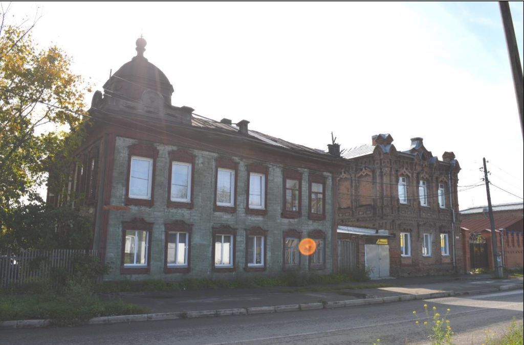 1. Градостроительная характеристика.Здание расположено в исторической части города Бийска. Северо-западным фасадом выходит на красную линию улицы Л. Толстого, северо-восточным фасадом ориентирован вдоль переулка Фомченко.2. Объемно-планировочное решение.Двухэтажное Г-образное в плане здание на кирпичном фундаменте с вальмовой крышей. На дворовом юго-западном фасаде расположен лестничный блок, связывающий этажи.Планировка этажей идентична. Лестничная клетка связана с центрально расположенным холлом. Жилые комнаты располагаются по периметру дома.3. Конструктивные особенности.Стены бревенчатые, рублены с остатком, обшивка поздняя. Крыша -вальмовая с кровлей из листового металла, водосток организованный.4. Декоративное оформление фасадов.По периметру здание опоясывает профилированный карниз большого выноса, гладкий фриз и выступающий цоколь. Уличные северо-западный и северо-восточный фасады в шесть оконных осей каждый на углах оформлены простыми лопатками, между которыми попарно расположены прямоугольные окна. Наличники оформлены в очелье и фартуке накладной резьбой и завершены волютообразными элементами. Декор дополняют токарные полуколонии. Нижняя часть наличника прямоугольная с накладной резьбой. Оконные проемы имеют Т-образную расстекловку с форточками.Угловая часть здания акцентирована двумя фигурными уступчатыми аттиками с накладным орнаментом в виде бантов и восьмигранным куполом, который увенчан шпилем с кованым ажурным . Аттики цякептттенм полукруглым элементом с токарной розеткой по центру, продолжены над карнизом в виде ажурного ограждения кровли, выполненного из просеченного железа по деревянным объемным парапетным столбикам.Дворовый юго-восточный фасад имеет четыре оси оконных проемов с простыми наличниками в виде полочек. Юго-западный фасад в одну ось оконных проемов.Декоративные элементы выделены цветным колером.