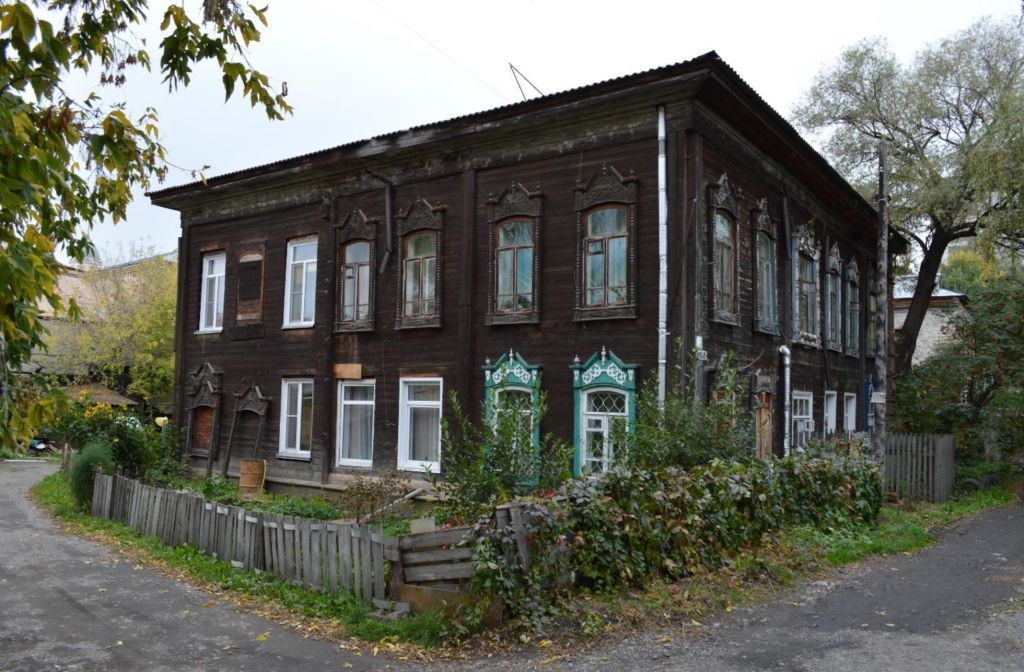 1. Градостроительная характеристика. Здание находится в исторической части города Бийска. Главным севе-ро-западным фасадом выходит на красную линию застройки улицы Озерной.2. Объемно-пространственное решение. Двухэтажный бревенчатый жилой дом, квадратный в плане с небольшим ризалитом по левому флангу юго-восточного фасада. Юго-западный фасад здания формирует брандмауэрная стена, уходящая в глубину участка. Вход осуществляется с дворового юго-восточного фасада. 3. Конструктивные особенности. Бревенчатые стены рублены с остатком, юго-восточная стена выполнена из керамического кирпича лицевой кладки. Крыша - вальмовая с кровлей из листового металла. 4. Декоративное оформление фасадов.Стены здания завершаются развитым карнизом и фризом. Места перерубов оформлены гладкими лопатками. Оконные проемы делят фасады с равным шагом. Лучковые окна оформлены наличниками с пропильной накладной и токарной резьбой. Треугольное завершение наличников выполнено с разрывом, в разрыве и по флангам – токарные шишки. Очелья и фартуки декорированы накладной орнаментальной резьбой. Вертикали окон второго этажа дополнены токарными полуколонками. Окна первого этажа выполнены со ставнями. Оконные проемы с заполнением Т-образной формы. Наличники окон и заполнение окрашены светлым тоном.Главный северо-западный фасад в шесть оконных осей имеет более яр-ко выраженное декоративное убранство. Правая фланговая ось, примыкающая к брандмауэрной стене, отделена лопаткой, имеет спаренные окна. В оставшейся части фасада размещено пять осей проемов, по средней оси - широкие трехстворчатые окна. Широкое окно второго этажа оформлено наличником, отличающимся композиционным и декоративным решением. Очелье с полукруглым завершением декорировано объемной резьбой: в вершине - трилистником и волютами, в тимпане – листьями, розами и свитком. Фартук оформлен аналогичными розами и листьями. Токарные полуколонки вертикалей имеют более сложный рисунок. Дворовый юго-восточный фасад делится лопатками на три части, по левому флангу - ризалит в одну ось проемов, рядом с ризалитом организован входной узел с простым деревянным козырьком. Проемы по осям ризалита и входа имеют рамочные профилированные наличники.Брандмауэрная стена, формирующая юго-западный фасад, в уровне 2-го этажа делится плоскими лопатками. Лучковое окно выполнено без декоративного оформления. Торец брандмауэрной стены, выходящий на северо-западный фасад в виде пилястры, выполнен с декоративным оформлением фигурной кирпичной кладкой: в уровне 1-го этажа филенчатый руст и накладной круглый элемент, в уровне 2-го этажа – фигурная филенка, в уровне фриза, карниза и между этажами - раскреповки, в завершении - кирпичный столбик.Общая оценка общественной, научно-исторической и художественной значимости памятника Здание является примером городского деревянного дома начала ХХ века, выполненного с резным декором в формах эклектики с элементами традиционного народного зодчества.