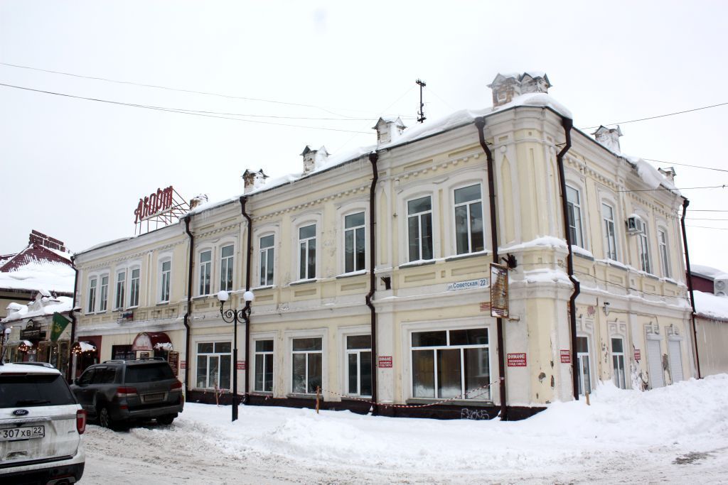 1.Градостроительная характеристика, местоположение: здание расположено в исторической части города, на пересечении пер. Розы Люксембург и ул. Советской; главный протяженный фасад – вдоль красной линии застройки ул. Советской.2. Объемно-планировочное решение:прямоугольное в плане;двухэтажное здание с подвалом под частью объема;планировка: в конструкциях капитальных стен.3. Оформление фасадов:3.1. Композиции фасадов:главный юго-восточный фасад – в 7 оконных осей с симметричным решением с выделением флангов в 2 оси лопатками, завершенными над карнизом парапетными тумбами;симметричная композиция северо-восточного фасада в 4 оконных оси с лопаткой по центру.3.2. Элементы декоративного оформления фасадов:угловые и средние лопатки без декора в уровне 1 этажа, с вертикальными филенками со щипцом в уровне 2 этажа, при этом угол при пересечении улиц оформлен тремя угловыми лопатками;венчающий профилированный карниз малого выноса с фризом из прямоугольных филёнок и сухариков;профилированный междуэтажный пояс с раскреповками в местах лопаток;подоконный пояс окон 2 этажа, дополненный прямоугольными филенками на ширину окна; широкие наличники лучковых окон 2 этажа, дополненные полочками и свесами в верхней части, в парных окнах правого фланга наличники объединены;рамочные широкие наличники прямоугольных окон 1 этажа юго-восточного фасада;широкие прямые наличники лучковых окон 1 этажа северо-восточного фасада, дополненные выделенным замковым камнем и трапециевидными элементами в тимпане;парапетные тумбы с фронтончиками по всем сторонам и филенкой в лицевой части, размещенные над карнизом по всем фасадам, включая дворовые.3.3. Цветовое решение фасадов:выделение декоративных элементов белым цветом;3.4. Рисунок оконного заполнения:Т-образное заполнение окон лучковой формы. 4. Конструктивные особенности здания:стены из керамического кирпича с кирпичными клинчатыми перемычками;крыша: чердачная четырех-скатная; кровля из листового металла;водосток организован посредством водосточных труб.5. Общая оценка общественной, исторической и художественной значимости памятника:пример городского каменного дома начала ХХ века с оформлением фасадов в лицевой кирпичной кладке в эклектичных формах с применением классических форм.