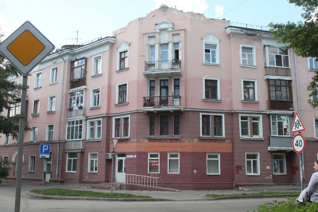1.Градостроительная характеристика.Здание формирует границы квартала на пересечении проспекта Ленина, улицы Профинтерна и Рыночного проезда.2.Объемно-пространственное решение.Четырехэтажное здание с подвалом, секционного типа, с помещениями общественного назначения на первом этаже, в плане сложной формы.3.Конструктивные особенности.Стены кирпичные, оштукатуренные.Перекрытия подвала и лестничной клетки, лестничные площадки и косоуры выполнены из монолитного железобетона. Ступени лестничных маршей наборные из бетона мозаичного состава.Конструкция крыши чердачная, кровля из листового металла. Водосток организованный.4.Композиция и художественное оформление фасадов.Фасады оштукатурены и окрашены в цветовую гамму из двух оттенков красного цвета: розового и цвета красного дерева, декоративные элементы выделены белым цветом. Уличные фасады имеют более богатый штукатурный декор. Первый этаж и угол здания до уровня третьего этажа, расположенный на пересечении улицы Профинтерна и Рыночного проезда, отделенный междуэтажным карнизом по главным и торцевым фасадам, обработаны штукатурным квадровым рустом и окрашены в цвет красного дерева. Стены завершаются гладким фризом и большого выноса карнизом, разорванным фигурными аттиками в центральной части торцевого юго-западного фасада и на углу пересечения улицы Профинтерна и Рыночного проезда. Невысокий цоколь по периметру здания завершен прямоугольным выступом.Бетонные плиты балконов здания по всем фасадам выполнены на консолях, имеют металлическое ограждение. Оконные проемы здания выполнены трех видов: прямоугольные, арочные в уровне первого этажа по главным уличным фасадам и узкие проемы на углу здания, расположенного на пересечении улицы Профинтерна и Рыночного проезда. Расстекловка прямоугольных окон двухстворчатая Т-образной формы с форточкой и фрамугой, разделенной на две равные части. Арочные окна здания имеют Т-образной формы расстекловку. Узкие окна выполнены с фрамугой и форточкой. Арочные оконные проемы первого этажа по фасадам, расположенные в арочных нишах, обрамлены штукатурными архивольтами на импостах. Импосты между витринными арочными окнами общие. Прямоугольные окна и двери бал¬конов по уличным фасадам и торцевому северо-западному фасаду со второго по четвертый этажи обрамлены профилированными рамочными наличника-ми, с третьего по четвертый этажи по всем фасадам оконные проемы дополнены подоконными профилированными полочками.Главный юго-западный фасад по проспекту Ленина, выполненный в пять осей проемов, практически симметричен, по центральной оси акцентирован ступенчатым щипцовым аттиком, обрамленным штукатурным пояском и увенчанным бетонным вазоном, под которым расположено небольшое слуховое окно лучковой формы с металлическим ограждением, декорированное полочкой. Две оси балконов, расположенные в уровне третьего и четвертого этажей на второй и четвертой осям, выделены лопатками со второго и четвертый этажи. В уровне междуэтажного пояса лопатки декорированы раскреповками, над карнизом накладным штукатурным декором. Лопатки, расположенные по правому флангу и на углу фасада, украшены барельефным орнаментом с раппортом в виде вазонов и ветвей растений. По краю кровли фасада над лопатками проходит балюстрада, укрепленная между к