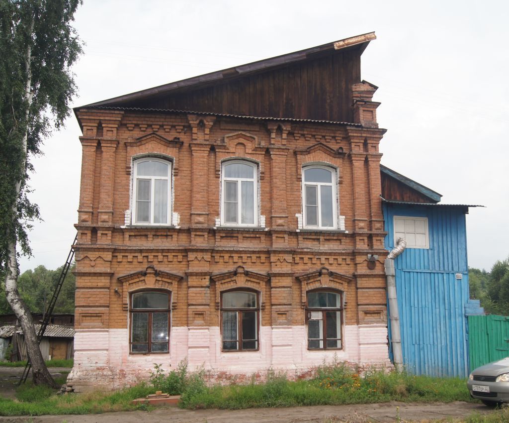 1. Градостроительная характеристика, местоположение: здание расположено в исторической части города, в квартале, ограниченном пер. Индустриальным, пер. Партизинским;главным фасадом выходит на красную линию застройки ул. Владимира Ленина.2. Объемно-планировочное решение:2.1. Объемно-пространственное решение:двухэтажное под односкатной крышей;прямоугольное в плане.2.2. Планировочное решение:в конструкциях капитальных стен.3. Оформление фасадов:3.1. Композиции фасадов:главный юго-восточный фасад в 3 оконных оси симметричен, разделен лопатками на 3 равных части;боковой юго-западный фасад в 5 оконных осей с выделением крайней оси лопатками по левому флангу;северо-восточный фасад – глухой с примыкающими деревянными пристройками лестничных клеток, в уровне карниза образован аттиковой стенкой.3.2. Элементы декоративного оформления фасадов:раскрепованные лопатки главного юго-восточного фасада в уровне 1 этажа рустованы и дополнены прямоугольными нишами в среднем русте, в уровне 2 этажа лопатки продолжены в виде пилястр (пары пилястр по флангам) с квадратными нишами и накладными элементами в виде алмазной грани в нижней части и фризом в фланговых лопатках; раскрепованные лопатки юго-западного фасада упрощенной формы;венчающий узкий карниз с городками, за исключением северо-восточного фасада;узкий карниз с зубчиками северо-восточного фасада;междуэтажный пояс с зубчиками, объединенный прямоугольными нишами с подоконным поясом 2 этажа;полуналичники лучковых окон в виде треугольных сандриков, дополненных шишками в уровне 2 этажа;полуналичники лучковых окон 1 этажа главного фасада в виде разорванных сандриков с выделенными замковыми камнями и навершиями;полуналичник центрального лучкового окна 2 этажа по главному фасаду в виде сандрика с подвышением.3.3. Рисунок оконного заполнения:Т-образное с выделением фрамуг. 4. Конструктивные особенности здания:стены из керамического кирпича лицевой кладки с применением лекального;кирпичные перемычки лучковой формы.5. Общая оценка общественной, исторической и художественной значимости памятника:пример кирпичного особняка начала ХХ века с богатым декоративным оформлением фасадов, выполненным в лицевой кирпичной кладке в эклектичных формах;оформляет угол квартала исторической части города.