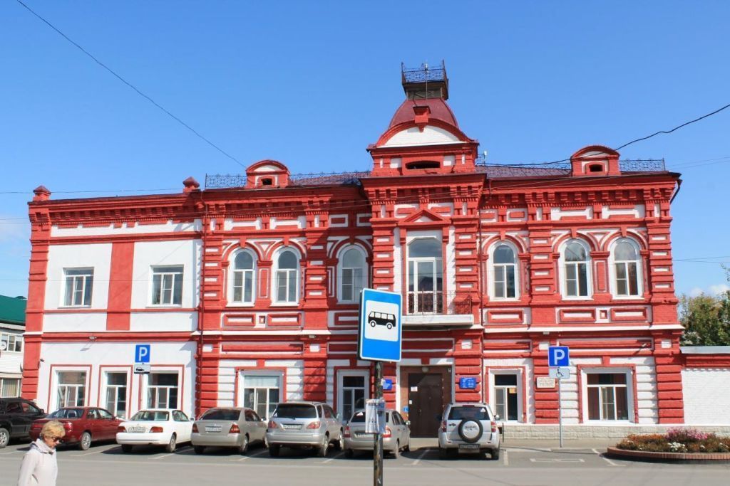 1. «Дом купца», нач. XX в.Алтайский край, г. Камень-на-Оби, ул. Ленина, 781.1. Градостроительная характеристика.Двухэтажное кирпичное здание расположено вдоль красной линии улицы Ленина, является основным элементом комплекса, формируя левый фланг уличного фасада застройки усадьбы. 1.2. Объемно-планировочное решение и габариты здания.Двухэтажное с вальмовой крышей, в плане прямоугольной формы кирпичное здание с небольшим подвалом под центральной частью. Композиция главного фасада акцентирована ризалитом с парадным входом, имеющего завершение в виде четырехгранного шатра с ребрами округлой формы.Планировка этажей зально-коридорного типа с продольно-поперечным расположением несущих стен по первому этажу. Объем лестницы разместился по центральной оси в северо-восточной части здания.1.3. Конструктивные особенности здания.Стены и перемычки кирпичные лицевой кладки. Перемычки в уровне первого этажа по юго-западному фасаду клинчатые, по северо-восточному и юго-восточному фасадам арочные лучкового типа, в уровне второго этажа арочные полуциркульные.Перекрытие подвала и первого этажа – кирпичные своды по стальным балкам. Чердачная конструкция крыши с кровельным материалом из листового металла. Четырехгранный шатер с ребрами округлой формы и покрытием в виде «чешуи» из листового металла.1.4. Декоративное оформление фасадов.Стены выполнены в лицевой кладке с применением лекального кирпича в декоре. Плоскость фасадов венчает карниз, декорированный ступенчатыми кронштейнами и рядом поребрика. Фриз отделен уступчатым поясом, дополнен по главному и боковому фасадам плоскими накладными элементами. По периметру здание также опоясывают междуэтажный и подоконные пояса, между которыми под оконными проемами устроены прямоугольные рамки. Фасады разбиты лопатками, между которыми размещены оконные проемы: арочные в уровне 2-го этажа, лучкового завершения на 1-м этаже, по главному фасаду в уровне 1-го этажа – прямоугольные проемы. Главный и боковой фасады имеют более насыщенное декоративное убранство. Лопатки по этим фасадам в уровне первого этажа выполнены в виде дощатого руста, в уровне 2-го этажа руст лопаток дополнен филенками. Окна первого этажа обрамлены простыми наличниками с выделенными замковыми камнями. По главному и юго-восточному торцевому фасаду арочные окна 2-го этажа декорированы архивольтами и замками в каждой вершине, простенки оформлены филенками со вставками. Композиция главного фасада, обращенного на красную линию улицы, в семь оконных осей симметрична, акцентирована объемным ризалитом в одну оконную ось, завершенным аттиковой стенкой с фронтонами лучковой формы по трем сторонам, вершина центрального фронтона декорирована массивным замком. По главному фасаду в аттике невысокое слуховое окно. Над ризалитом устроен четырехгранный шатер с ребрами округлой формы и чешуйчатым покрытием. Верх шатра украшен деревянным поясом с подзором из пропильной резьбы и декорирован кованой решеткой с растительным орнаментом. Над центральным входом ризалита в уровне второго этажа расположен прямоугольный в плане балкон с кованым ажурным ограждением. Проем балконной двери с трапециевидной перемычкой имеет тянутой формы обрамление, украшен треугольным сандриком на консольках. Боковые стороны ризалита в уровне 2-го этажа допо