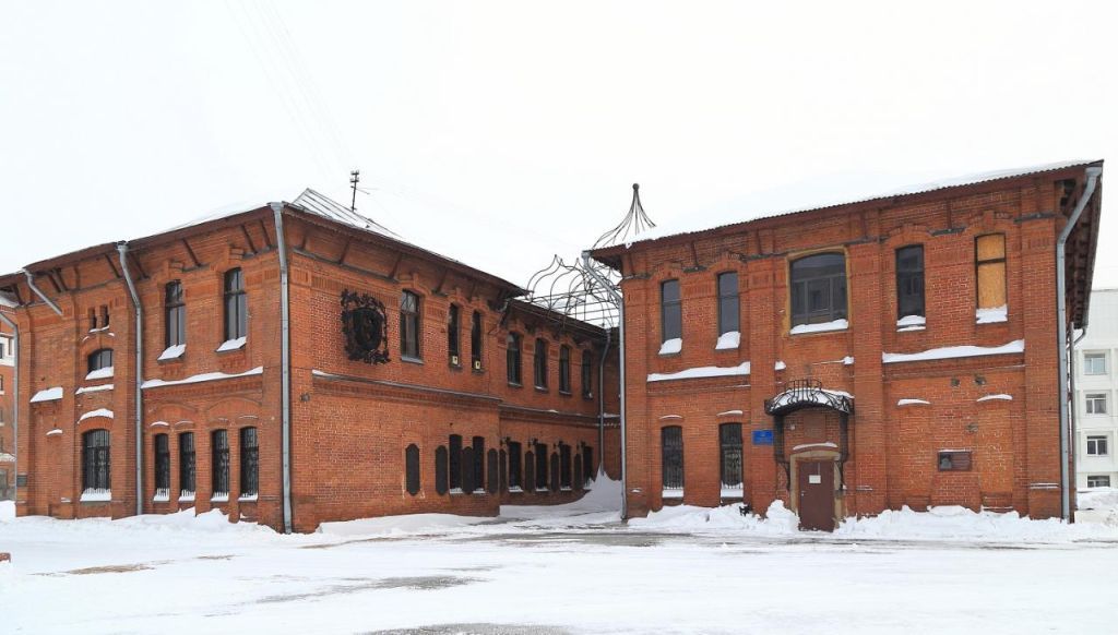 1.Градостроительная характеристика.Местоположение:здание расположено на территории площади Ветеранов на пересечении просп. Комсомольского и ул. Шевченко.2.Объемно-планировочное решение.2.1.Габариты здания:двухэтажное с подвалом здание П-образной формы в плане.2.2.Планировочное решение:в конструкциях капитальных стен.2.3.Объемно-пространственное и композиционное решение:внешний контур здания, усложненный ризалитами по главномувосточному фасаду (в зонах входных групп) и южному фасаду (в объеме лестничной клетки);акцент по торцевым северным фасадам в виде оси проемов, выделенной лопатками;акцент по крайней правой оси западного фасада в виде легкого ризалита.2.4.Оконные и дверные проемы на период начала XX века:форма окон первого и второго этажей с лучковым завершением, узкие окна первого этажа, размещенные попарно под широкими окнами второго этажа по южному фасаду и левому флангу восточного фасада;форма дверных проемов с лучковым завершением по южному, восточному и северному фасадам.3.Архитектурно-художественное оформление фасадов.3.1.Отделка фасадов и их цветовое решение:плоскость фасадов и элементы декора - кладка из керамического кирпича старого образца с расшивкой швов.3.2.Элементы декоративного оформления фасадов:ризалиты со стороны юго-западного фасада (существующий объем лестничной клетки), главного юго-восточного фасада (в зонах входных групп);треугольные фронтоны со слуховыми окнами в тимпанах ризалитов восточного фасада;лопатки, фланкирующие углы здания, ризалиты, композиционные акценты фасадов;межэтажный карниз, оформленный поребриком, прерывающийся в местах лопаток;карниз в уровне второго этажа с орнаментом из поребрика, оформляющий фризовую часть фасадов, прерывающимся в местах композиционных акцентов, в том числе в местах ризалитов; лежачие филенки под окнами первого этажа; полочки и зубчики подоконной части окон второго этажа; дугообразные бровки над оконными проемами первого этажа; дугообразные бровки, объединяющие парно окна первого этажа южного и западного фасадов;выделенные арочные лучковые перемычки с замковой кладкой окон второго этажа;горизонтально протянутые профили карнизной и цокольной частей здания;оформление слуховых окон в тимпанах ризалитов;деревянные конструкции в тимпанах ризалитов;вынос карнизной части на фигурных деревянных кронштейнах.3.3.Оконное заполнение:рисунок переплетов на период начала XX века - с выделением фрамуг и горизонтальным членением створок, за исключением небольших окон лестничных клеток и слуховых окон.3.4.Материал и рисунок полотен наружных дверей: материал дверных блоков - дерево;филенчатые двери с рисунком филенок на период начала XX века по главному фасаду.4.Конструктивные особенности здания.4.1.Стены:несущие наружные стены из керамического кирпича размером 130x70x260мм на известково-песчаном растворе, кладка стен - рядная, сплошная без дополнительного утепления.перемычки наружных стен - кирпичные, в том числе арочные лучковой формы окон первого и второго этажей, прямые клинчатые окон подвала.4.2.Перекрытия:кирпичные коробовые своды коридоров первого и второго этажей.4.3.Крыша:конфигурация крыши на начало XX века - многоскатная крыша со щипцами на главном фасаде;фальцевал кровля из листового металла;форма слуховых окон;наружный организованный водосток.5.Инте