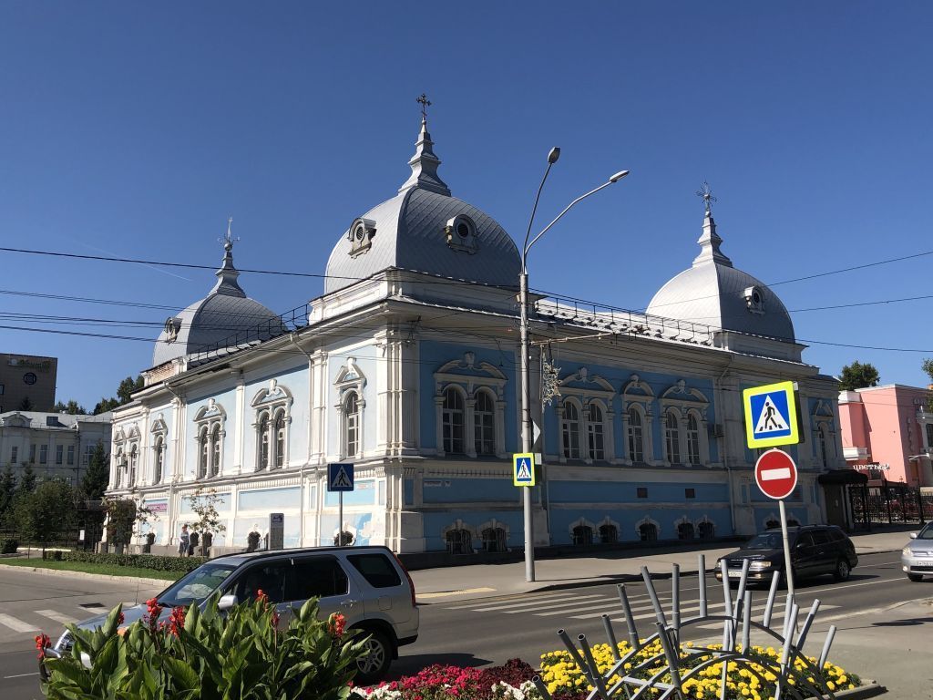 1.Градостроительная характеристика: Здание расположено в исторической части города в ряду каменной застройки квартала, на пересечении проспекта Ленина и улицы Короленко, юго-восточным главным фасадом выходит на красную линию проспекта Ленина. 2.Объемно - планировочное решение здания: Двухэтажное кирпичное оштукатуренное здание, в плане сложной конфигурации состоит из нескольких объёмов. Угловой объем фланкируют расположенные по уличным фасадам башенки, завершенные четырехгранными куполами. 3.Конструктивные особенности здания: стены кирпичные оштукатуренные, кровля из листового металла, покрытие шатров чешуйчатое, в помещениях цокольного этажа - кирпичные коробовые своды, кирпичные своды по еталлическим балкам. 4.Декоративное оформление фасадов: Декоративное оформление имеют преимущественно уличные фасады,каждый из которых симметричен. По их флангам устроены небольшого выноса ризалиты, выделенные двухъярусными раскрепованными пилястрами с каннелюрами полукруглого сечения в нижнем уровне и прямоугольными филенками под междуэтажным поясом. Фасад по просп. Ленина в ризалитах имеет спаренные проемы, между которыми -симметрично располагаются одинарный и два спаренных проема. Вход в здание по правому флангу фасада по просп. Ленина оформлен металлическим козырьком. Арочные оконные проемы верхнего этажа украшены наличниками в виде разорванных сандриков на консолях, размещенных на небольших пилястрах, композиция сандриков включает гирлянды и сложные замковые камни. Спаренные окна выполнены с лучковыми сандриками, одиночные - с треугольными. Горизонтальное членение фасадов представлено междуэтажным поясом с прямоугольными выступами (сухариками), образующими прерывистый ряд с малыми ромежутками, под которым размещены филенки из обрамления тянутой формы. 5. Интерьеры: - чугунные ступени лестничных клеток; чугунная стойка в лестничной клетке; - кирпичные коробовые своды с распалубками, кирпичные своды по металлическим балкам.Общая оценка общественной, научно-исторической и художественной значимости памятника.При реконструкции кровли были утрачены угловые башни со звонницами, вместо них построены четырехскатные башенки, формы которых отличаются от первоначальных. Объект культурного наследия представляет собой памятник истории, связанный с событиями Великой Отечественной войны. Мемориальная табличка в настоящее время утрачена.