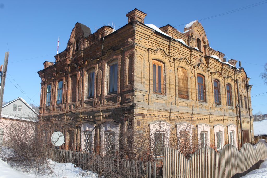 1. Градостроительная характеристика, местоположение:здание расположено в исторической части города на пересечении ул. Иркутской и ул. Федора Худоногова;главный юго-восточный фасад – вдоль красной линии застройки ул. Иркутской. 2. Объемно-планировочное решение:двухэтажное прямоугольное в плане здание состоит из 2 объемов:к северо-восточному фасаду основного квадратного в плане объема под вальмовой крышей примыкает объем входного узла и лестничной клетки с односкатной крышей;планировка в конструкциях капитальных стен:продольная стена делит основной объем на 2 части;входной узел по правому флангу юго-восточного фасада.3. Оформление фасадов:3.1. Композиции фасадов:уличные фасады – юго-западный и основная часть главного юго-восточного фасада симметричны и идентичны: в 5 осей проемов каждый (в том числе ложных по центру юго-западного фасада);центральная ось акцентирована объемным щипцовым аттиком с арочным слуховым окном;по правому флангу юго-восточного фасада – двухэтажный объем в 1 ось лестничной клетки и центрального входа, увенчанный щипцовым аттиком;боковой северо-восточный фасад: в 3 окна в уровне 2 этажа, имеет вход и 2 малых окна 1 этажа;дворовой северо-западный фасад - в 3 оконные оси, имеет одноэтажный пристрой в правой части;3.2. Элементы декоративного оформления фасадов, выполненные в лицевой кирпичной кладке с применением лекального кирпича:венчающий профилированный карниз с фигурным аркатурным фризом по периметру здания, разорванные по центральным осям уличных фасадов;декоративные элементы уличных фасадов:междуэтажный карниз с фризом из сухариков, в лестничном блоке – из каблучков;фланкирующие лопатки, раскрепованные в уровне карнизов с оформлением 3 квадратными филенками в уровне 1 этажа, накладными элементами и сложными филенками в уровне 2 этажа;парапетные столбики по осям лопаток над карнизом; накладные декоративные элементы в простенках окон, раскреповки в уровне карнизов;аттики главных фасадов с филенками и подвышением в форме усеченного щипца с геометрическим декором и арочным слуховым окном в тимпане;щипцовый аттик килевидной формы, завершающий ось главного входа по юго-восточному фасаду, с круглой розеткой в тимпане и шпилем в завершении;рамочные наличники лучковых окон 1 этажа с выделенным замковым камнем и полочкой по верху;наличники высоких лучковых окон 2 этажа с прямоугольной филенкой в подоконной части и щипцовым сандриком;рамочные наличники парных арочных окон, размещенных в уровне 2 этажа по оси главного входа юго-восточного фасада;наличники центральных лучковых окон 2 этажа с парой филенок в подоконной части и дугообразным завершением с пятилистником в тимпане, фигурным элементом в вершине;декоративные элементы северо-западного бокового фасада:наличники высоких лучковых окон 2 этажа с щипцовым сандриком;огибающая лопатка по правому флангу в уровне 2 этажа аналогичная уличным фасадам;декоративные элементы северо-восточного бокового фасада в части примыкающего объема лестничной клетки:рамочные наличники лучковых окон 2 этажа;огибающая лопатка по левому флангу с оформлением аналогичным правой лопатке юго-восточного фасада;3.3. Рисунок оконного заполнения:Т-образное заполнение с выделением фрамуг.4. Конструктивные особенности здания:стены из керамического кирпича лицевой кладки 
