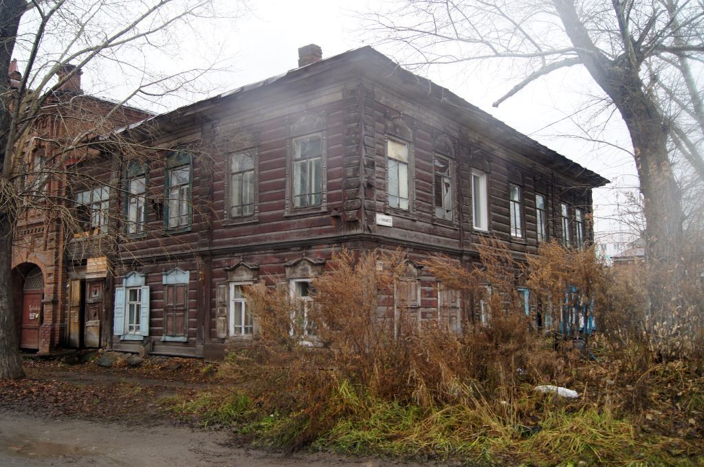 1. Градостроительная характеристика. Дом расположен в правобережной части города Бийска, формирует угол квартальной застройки на пересечении улиц Куйбышева и Турусова. 2. Объемно-пространственное решение. Двухэтажное бревенчатое здание, в плане сложной формы. К основному объему прямоугольной в плане формы с правых флангов бокового юго-восточного и дворового юго-западного фасадов пристроены двухэтажные дощатые объемы лестничных клеток, через которые со стороны улицы Турусова и Куйбышева осуществляются входы в жилые помещения первого и второго этажей. 3. Конструктивные особенности. Стены бревенчатые, рублены с остатком, обшиты широким горизонтальным тесом по всем фасадам основного здания, включая пристроенные объемы под односкатной крышей. Со стороны бокового юговосточного фасада устроена завалинка с металлическим покрытием. Крыша основного объема вальмовая четырехскатная, пристроенных объемов -односкатная, расположена ниже основного карниза, покрытие кровли выполнено из листового металла. 4. Композиция и художественное оформление фасадов. Фасады основного здания по периметру венчает карниз большого выноса и гладкий фриз, подшитые горизонтальными досками. Углы и места врубок основного объема закрыты лопатками, декорированными в уровне первого этажа накладным декором геометрического орнамента, в уровне второго этажа декором криволинейного очертания. Под окнами второго этажа проходит профилированный междуэтажный поясок, огибающий лопатки. Оконные проемы второго этажа основного здания прямоугольной формы обрамлены наличниками. Фронтоны имеют треугольные завершения с разорванным карнизом, по оси симметрии которого размещена токарная рюмочка. Поле фронтона и узкие прямоугольные фартуки выполнены без декора. Вертикальные элементы декорированы накладными токарными колонками с перехватами на базах, завершены в верхней части токарными рюмочками. Окна первого этажа меньше по высоте окон второго этажа, имеют двухстворчатые филенчатые ставни и аналогичное декоративное оформление фронтонов и фартуков наличников. Вертикальные элементы выполнены без декора. Все оконные проемы имеют двухстворчатое заполнение Т-образной формы с фрамугой и разделением каждой створки на две неравные части. Композиция главного северо-восточного фасада основного объема, ориентированного на улицу Турусова и выполненного в четыре оконные оси, симметрична и разделена лопаткой по центру фасада на две равные части, в каждой из которых расположено по два проема. Фасад двухэтажного объема лестничной клетки имеет в уровне второго этажа широкий проем с двумя двухстворчатыми окнами, каждое выполнено с Т-образной расстекловкой и фрамугой, разделенной на две части. Створки имеют четырехчастную расстекловку. В уровне первого этажа расположен дверной проем с двупольной филенчатой дверью, декорированный накладными круглыми элементами однопольной филенчатой дверью. Северо-западный фасад, ориентированный на улицу Куйбышева, выполнен в семь осей оконных проемов, имеет симметричную композицию, разделен лопатками на три неравные части, в центральной части три проема, в двух остальных по два. Дворовый юго-западный фасад основного объема выполнен в две оси оконных проемов в уровне второго этажа, расположенных с левого фланга. Вход в двухэта