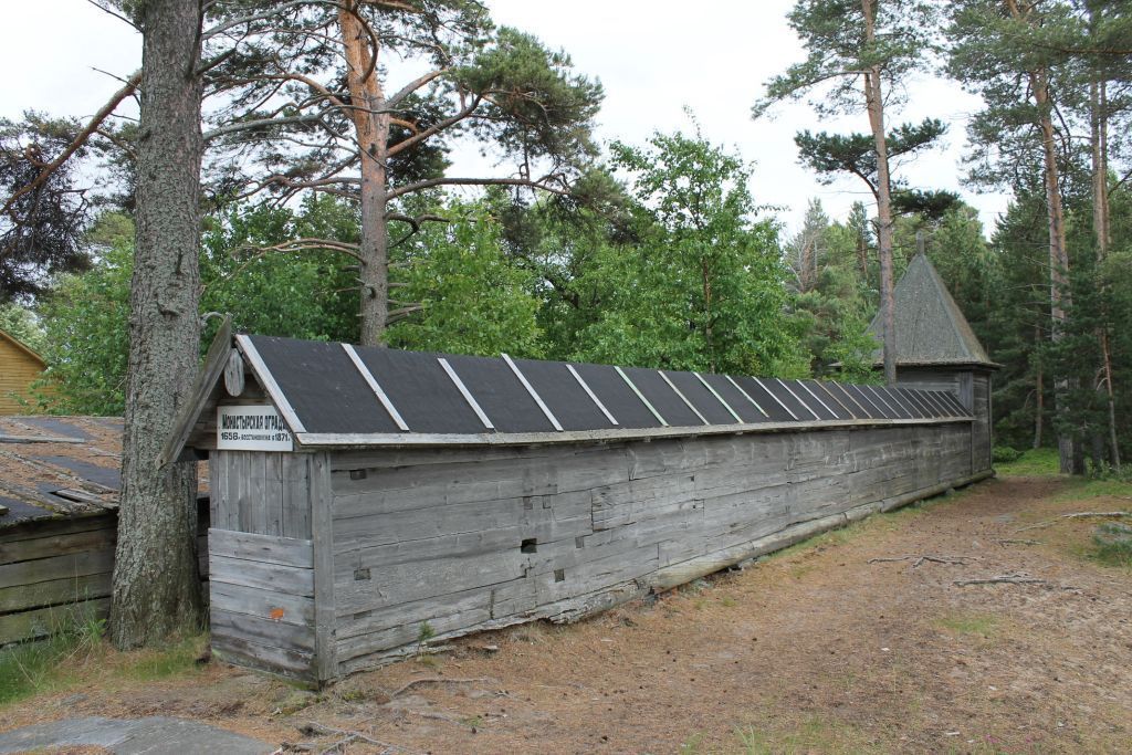 Градостроительные характеристики объекта культурного наследия (памятника истории и культуры) народов Российской Федерации федерального значения «Угловая деревянная башенка и часть стены» (далее – объект культурного наследия «Угловая деревянная башенка и часть стены»)Местоположение объекта культурного наследия «Угловая деревянная башенка и часть стены».Градостроительные характеристики объекта культурного наследия «Угловая деревянная башенка и часть стены».Роль объекта культурного наследия «Угловая деревянная башенка и часть стены» в композиционно-планировочной структуре объекта культурного наследия (памятника истории и культуры народов Российской Федерации федерального значения «Ансамбль Кийского Крестного (Крестно-Онежского) монастыря: Собор Патриарха Никона, XVII в., Церковь Рождества Богородицы, XVII в., Церковь Честных даров и кельи, XVII в., Угловая деревянная башенка и часть стены, XVII в.».Архитектурные и конструктивные характеристикиОбъемно-пространственная композиция строения второй половины XIX века, включая высотные отметки, габариты объемов, конфигурацию, состоящая из прямоугольной в плане башни и примыкающих к ней с севера и востока стен ограды.Высокая четырехскатная крыша с полицами угловой башни, двухскатная крыша стен второй половины XIX века, их высотные отметки, конструкция, конфигурация, тесовое покрытие кровель.Завершение башни второй половины XIX века, выполненное в виде деревянного фигурного шпиля, его конструкция, габариты, материал, характер покрытия.Композиционное решение и архитектурно-художественное оформление фасадов второй половины XIX века: стены башни не имеют проемов, завершены широким гладким, большого выноса, карнизом; на углах укреплены доски, имитирующие пилястры. Рубленные из отесанных плах «в лапу» стены башни; рубленные фрагменты ограды, состоящие из двух глухих параллельных стенок, сложенных из плах, объединенных через равные промежутки перпендикулярными врубками, перевязанными «в лапу»; выполненные в дереве элементы фасадного декора; их конструкция и материал, высотные отметки на вторую половину XIX века.
