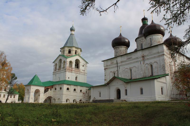 Предмет охраны объекта культурного наследия (памятника истории и культуры) народов Российской Федерации федерального значения«Троицкий собор», 1673 г., в составе объекта культурного наследия (памятника истории и культуры) народов Российской Федерации федерального значения «Ансамбль Антониево-Сийского монастыря: Троицкий собор, 1673 г., Благовещенская церковь с трапезной, 1673 г., Сретенская церковь, 1673 г., Нижний ярус колокольни, XVII в.», расположенного по адресу: Архангельская область, Холмогорский район, дер. Антониево-Сийский монастырьГрадостроительные характеристики объекта культурного наследия (памятника истории и культуры) народов Российской Федерации федерального значения «Троицкий собор» (далее – объект культурного наследия «Троицкий собор»)Местоположение и градостроительные характеристики объекта культурного наследия «Троицкий собор».Роль объекта культурного наследия «Троицкий собор» в композиционно-планировочной структуре объекта культурного наследия (памятника истории и культуры народов Российской Федерации федерального значения «Ансамбль Антониево-Сийского монастыря: Троицкий собор, 1673 г., Благовещенская церковь с трапезной, 1673 г., Сретенская церковь, 1673 г., Нижний ярус колокольни, XVII в.» и Свято-Троицкого Антониево-Сийского мужского монастыря.Архитектурные и конструктивные характеристикиОбъемно-пространственная композиция собора конца XVI века – второй половины XVII века, включая крыльцо, крытую паперть, апсиды, двухэтажный объем усыпальницы с проездной аркой.Крыша, ее высотные отметки, характер кровельных покрытий скатных крыш собора и усыпальницы.Барабаны глав XVII -XVIII веков.Композиционное решение и архитектурно-художественное оформление фасадов конца XVI – второй половины XVII веков, XIX века, в том числе местоположение, форма, размер и оформление оконных и дверных проемов (окна с арочными перемычками в профилированных прямоугольных нишах или арках), белокаменный цоколь с профилировкой, лопатки, тройные арки с колонками на западном фасаде, аркатурно-колончатый пояс на центральном барабане, перспективные порталы с белокаменными дыньками, завершение собора в виде развитого антаблемента с карнизами, широкими фризами с лопатками и профилированными нишами, включая конструкции первоначальных закомар.Материал и характер отделки фасадных поверхностей конца XVI – второй половины XVII веков, XIX века, включая валунное основание стен, белокаменные цоколи, кирпичные с обмазкой поверхности стен, белокаменное крыльцо со ступенями XIX века.Колористическое решение фасадов, кровель.Пространственно-планировочная структура интерьеров собора и усыпальницы в пределах капитальных стен, столбов и сводчатых перекрытий конца XVI – второй половины XVII веков, включая кирпичные своды с распалубками, форму и размер дверных проемов с арочными и прямыми перемычками, помещения тайников в алтаре и паперти.Капитальные кирпичные стены на валунном основании и полуциркульные и крестовые своды конца XVI века – второй половины XVII века, их конструкция и материал, отметки перекрытий.Элементы архитектурно-декоративного убранства интерьеров, включая карнизы в завершении столбов и основании барабанов, профилированные цоколи столбов, перспективные порталы с белокаменными дыньками, включенные в интерьер паперти и усыпальницы, ниши в ст