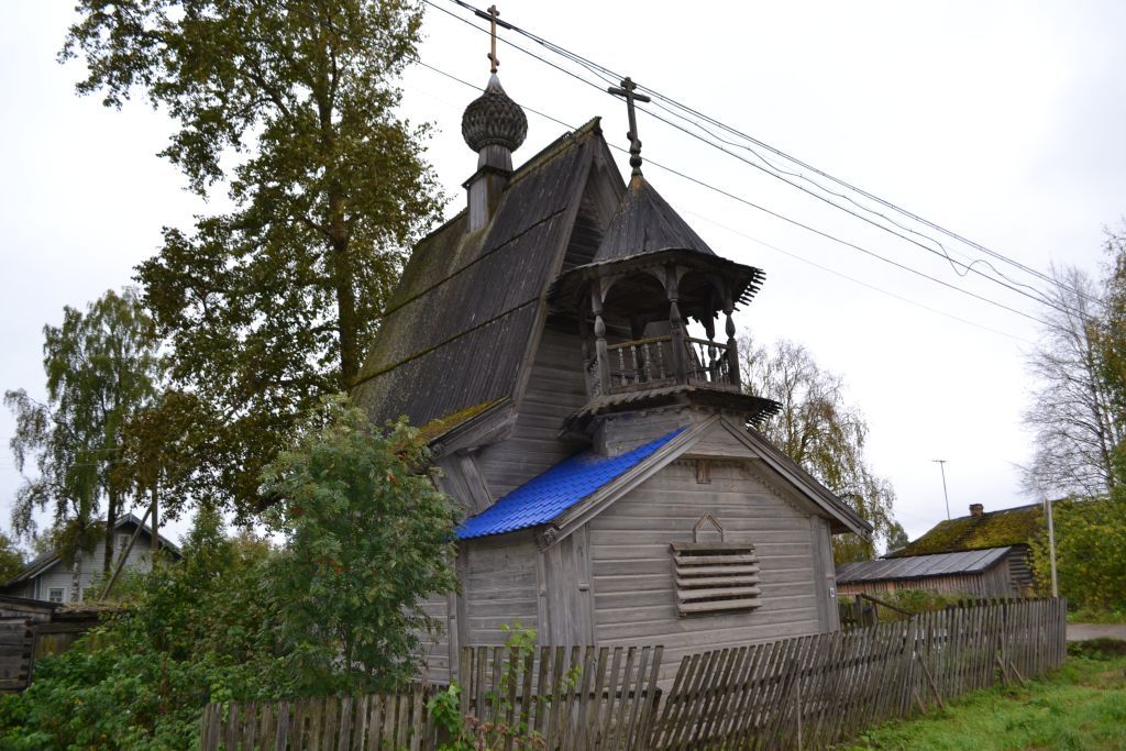 Предмет охраны объекта культурного наследия (памятника истории и культуры) народов Российской Федерации федерального значения «Часовня (деревянная)», XVIII в., расположенного по адресу: Архангельская область, Плесецкий район, с. Конево, ул. Ленинградская, д. 116Градостроительные характеристики объекта культурного наследия (памятника истории и культуры) народов Российской Федерации федерального значения «Часовня (деревянная)» (далее – объект культурного наследия «Часовня (деревянная)»)Местоположение объекта культурного наследия «Часовня (деревянная)» –в ряду застройки главной улицы села Конево – Ленинградской. Градостроительные характеристики объекта культурного наследия «Часовня (деревянная)».Секторы и направления видовых раскрытий, визуальные связи объекта культурного наследия «Часовня (деревянная)».Роль объекта культурного наследия «Часовня (деревянная)» в композиционно-планировочной структуре с. Конево.Архитектурные и конструктивные характеристикиОбъемно-пространственная композиция объекта культурного наследия «Часовня (деревянная)», состоящая из квадратного в плане четверика молельного помещения (основной объем), выполненного с повалами в верхней части северной и южной стен, и примыкающим с запада, равным по ширине, узким и более низким притвором с установленной на него шестигранной звонницей. Габариты и конфигурация крыш, высотные отметки крыш: крыша основного объема – двускатная, крутого подъема; притвора – двухскатная, пологая; звонницы – шестигранный шатер с полицами. Материал, конструкция, конфигурация и покрытие венчающих элементов – луковичной главки с крестом на круглой шее, установленной на квадратный в плане постамент, врубленный в конек крыши основного объема, покрытой городчатым лемехом; креста на шатре звонницы.Габариты и расположение капитальных бревенчатых стен сруба, конструктивные особенности, включая способ рубки ( «в обло»).Габариты, конфигурация и конструкция звонницы, включая площадку звона, опорные столбы шатра и ограждения яруса звона.Композиционное и архитектурно-художественное оформление фасадов: - количество, осевое расположение, конфигурация и размеры оконных и дверных проемов на фасадах, в том числе рамочные наличники окон с треугольными навершиями; - тесовая обшивка фасадов, в том числе вертикальная зашивка выпусков венцов срубов, имитирующая филенчатые пилястры; - глухие профилированные причелины, заканчивающиеся резными полотенцами на торцах кровель основного объема и притвора; - резные ветреницы на стыках причелин основного объема; - пояс накладных мутул – в нижней части повалов основного объема;- прорезная доска вдоль конька кровли основного объема; - доски с краями, обработанными фигурной порезкой – по скатам щипцов кровель основного объема и притвора; - точеные балясины и резные столбы звонницы; - пикообразыные окончания покрытий площадки звона и полиц шатра звонницы.Колористическое решение фасадов при поэтапном его формировании.Пространственно-планировочная структура интерьера здания в пределах капитальных стен; взаимосвязь помещений; местоположение, форма внутренних проемов, обеспечивающих взаимосвязь.Конструктивные элементы: шестнадцатидольное «небо» в основном объеме; маршевая на тетивах лестница в притворе.Обработка внутренней поверхности с