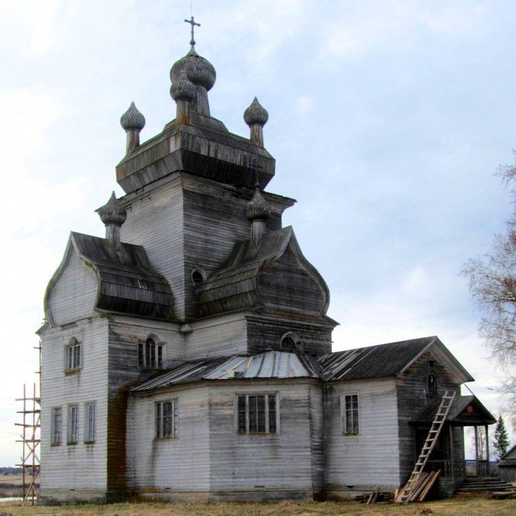Предмет охраны объекта культурного наследия (памятника истории и культуры) народов Российской Федерации федерального значения «Преображенская церковь», 1786 г., в составе объекта культурного наследия (памятника истории и культуры) народов Российской Федерации федерального значения «Комплекс деревянных церквей: Преображенская церковь, 1786 г., Колокольня, 1793 г.», расположенного по адресу: Архангельская область, Онежский район, дер. ПосадГрадостроительные характеристики объекта культурного наследия (памятника истории и культуры) народов Российской Федерации федерального значения «Преображенская церковь»(далее - объект культурного наследия «Преображенская церковь»)Местоположение объекта культурного наследия «Преображенская церковь» - в северной части комплекса, расположенного на левом берегу реки Онеги, на участке, отделенном от реки луговым пространством.Градостроительные характеристики объекта культурного наследия «Преображенская церковь».Роль объекта культурного наследия «Преображенская церковь» в композиционно-планировочной структуре объекта культурного наследия (памятника истории и культуры народов Российской Федерации федерального значения «Комплекс деревянных церквей: Преображенская церковь, 1786 г., Колокольня, 1793 г.» и деревни Посад.Композиционная роль объекта культурного наследия «Преображенская церковь» в структуре окружающего природного и культурного ландшафта - первой по значимости высотной доминанты окружающей местности.Габариты, силуэт объекта культурного наследия «Преображенская церковь».Секторы и направления видовых раскрытий, визуальные связи объекта культурного наследия «Преображенская церковь».Архитектурные и конструктивные характеристикиОбъемно-пространственная композиция представляет собой тип кубоватой церкви, в основе объемного решения — центрическая композиция; к высокому стройному четверику церкви по бокам и с запада примыкают пониженные одинаковые, почти квадратные в плане, двухсветные прирубы; четверик завершен пятиглавием на кубоватой кровле, прирубы - высокимибочками с луковичными главами на шейках; с востока к церкви примыкает трехчастный граненый алтарь, перекрытый трехлопастной бочкой; западный прируб окружен обходной галереей со скошенными углами; к галерее с запада примыкает квадратная крытая паперть; апсида, галерея и паперть понижены относительно прирубов храма и равны между собой по высоте.Габариты, конфигурация, высотные отметки, материал покрытия кубоватой кровли четверика, бочек прирубов, тр'ехлопастной бочки алтаря.Г абариты, конфигурация, расположение, высотные отметки и материал покрытия луковичных глав с шеями на четверике, на прирубах четверика, на алтаре.Габариты и расположение капитальных бревенчатых стен срубов, в том числе техника, вид рубки и виды замков крепления и сочленения венцов.Габариты, расположение и конструктивные особенности каркасной обходной галереи-паперти (подлежат уточнению по итогам дополнительных исследований и ремонтно-реставрационных работ).Композиционное и архитектурно-художественное оформление фасадов: количество, осевое расположение, конфигурация, размеры и обработка оконных и дверных проемов; простые профилированные наличники окон; простые профилированные карнизы с подзорами в завершении фасадов.Про