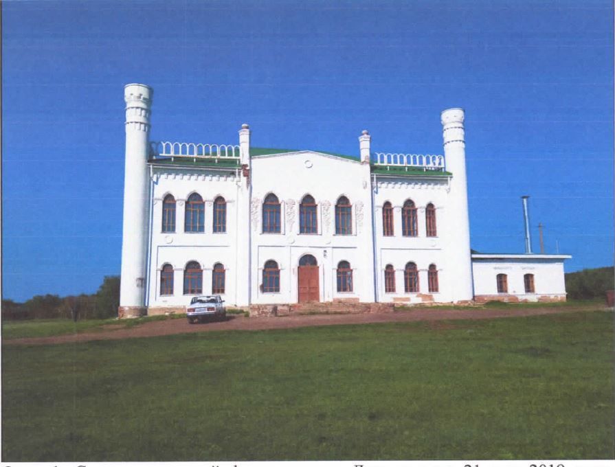 Местоположение и градостроительные характеристики.1.1. Местоположение Объекта – комплекса построек, расположенного вдоль улицы Уфимской к востоку от современного центра села Килимово Буздякского района Республики Башкортостан и состоящего из зданий дворца, мечети и парков. 1.2. Градостроительные характеристики Объекта и его роль в композиционно-планировочной структуре села: Объект является сохранившейся частью исторической градостроительной среды села Килимово, сложившейся в XIX – начале ХХ веков. 2. Объемно-пространственная и планировочная композиция Объекта:2.1. ДворецДвухэтажное каменное, оштукатуренное здание, в плане – сложной конфигурации с башнями, выполненными в «восточном стиле», состоящее из двух объемов – двухэтажного и примыкающего к нему одноэтажного.2.1.1. Композиционное решение и декоративное убранство центральной части двухэтажного объема северо-восточного фасада здания дворца:ризалит;башни, в плане восьмигранные, увенчанные сферой в форме шара центральные;стрельчатые арочные окна, расположенные на первом и втором этажах и украшенные стрельчатыми сандриками;стрельчатый дверной проем, расположенный в центре первого этажа и украшенный стрельчатым обрамлением;пилястры, расположенные по бокам от стрельчатого дверного проема;межэтажный пояс, расположенный между первым и вторым этажами и украшенный розетками;барельефы с растительными сюжетами, расположенными между окнами второго этажа; фронтон, в тимпане которого расположена розетка.2.1.2. Композиционное решение и декоративное убранство левой и правой частей двухэтажного объема северо-восточного фасада здания дворца:круглые выполненные в «восточном стиле» башни, расположенные по бокам фасада;окна первого этажа правой и левой частей, выполненные в виде бифориума;стрельчатые арочные окна, расположенные на втором этаже и украшенные стрельчатыми сандриками;межэтажный пояс, расположенный между первым и вторым этажами и украшенный розетками;небольшие барельефы в виде виноградных листов, расположенные между окнами второго этажа левой и правой частей; фриз, украшенный лепными консолями с растительным декором.2.1.3. Композиционное решение и декоративное убранство одноэтажного объема северо-восточного фасада здания дворца:два лучковых окна, оформленные наличниками с прямыми сандриками, которые состоят из тяг;пилястра, расположенная справа;подоконный пояс, проходящий под окнами первого этажа и выделенный тягами.2.1.4. Композиционное решение и декоративное убранство двухэтажного объема юго-восточного фасада здания дворца:круглые выполненные в «восточном стиле» башни, расположенные по бокам двухэтажного объема фасада;стрельчатые арочные окна, расположенные на первом (два) и втором этажах (три) и украшенные стрельчатыми сандриками;небольшие барельефы в виде виноградных листов, расположенные под сандриками окон второго этажа;фриз, состоящий из лепных консолей с растительными сюжетами. 2.1.5. Композиционное решение и декоративное убранство двухэтажного объема юго-западного фасада здания дворца:ризалит центральной части фасада;балкон центральной части фасада, опирающийся на восьмигранные колонны, которые завершаются сферой в форме шара. Балкон имеет ограждение из фигурных балясин;круглые выполненные в «восточном стиле» башни, расположенные по 