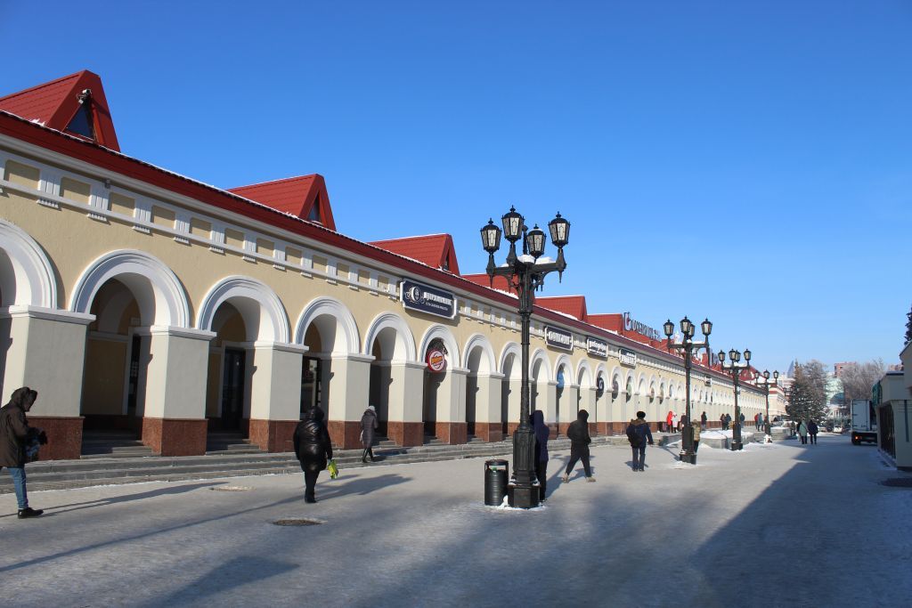 1.1.1.Местоположение Объекта: Республика Башкортостан, г. Уфа, Верхнеторговая площадь, 1.Историческое местоположение Объекта – в центре Верхнеторговой площади.1.2.Градостроительная роль Объекта как центрального элемента исторической планировочной структуры центра Уфы.2. 2.1.Архитектурные и конструктивные характеристики Объекта:Объемно-пространственная композиция:историческая объемно-пространственная композиция, характерная для типологии русских гостиных дворов XIX века – здание прямоугольной конфигурации, окруженное по периметру со стороны как наружных, так и внутренних фасадов обходными галереями.2.2.Композиция и архитектурно-художественное решение фасадов:Лицевые фасады: архитектурное решение в характере классицизма – решены в виде одноэтажной сквозной аркады на массивных пилонах, поддерживающих полуциркульные арки, оформленные профилированными наличниками (43 арочных проема на западном и восточном фасадах и 31 проем на южном и северном), и завершены лепным дорическим антаблементом, состоящим из фриза с лепными триглифами и профилированного карниза;материал и характер отделки фасадов – окрашенная штукатурка;декор фасадов – профилированные наличники арок и их базы,фриз с метопами и триглифами, профилированный венчающий карниз;оформление внутренних поперечных арочек галереи рельефными профилированными филенками;профилированная горизонтальная тяга между оконными проемами внутри аркады;принцип колористического решения фасадов – двуцветный с выделением деталей белым цветом;оформление оконных проемов внутри аркады профилированными наличниками и декоративными треугольными сандриками с рельефными квадрами с «алмазной гранью»;музеефицированные фрагменты исторического оформления – декоративные лепные навершия оконных наличников внутренней галереи с треугольными и полуциркульными сандриками, декорированными элементами национального орнамента (юго-восточный лицевой фасад).Внутренние фасады: архитектурное решение в характере классицизма, аналогичное лицевым фасадам;материал и характер отделки фасадов – окрашенная штукатурка;декор фасадов – профилированные наличники арок и их базы,фриз с метопами и триглифами, профилированный венчающий карниз;принципы колористического решения фасадов – выделение деталей белым цветом;оформление внутренних поперечных арочек галереи рельефными профилированными филенками;фрагменты сохранившихся наличников окон;орнамент, архитектурные элементы внутренней части фасадной галереи:рельефные орнаментальные вставки-наддверники в виде профилированных трапеций и квадров с алмазной гранью,наличники дверных проемов,стенные профилированные тяги.2.3.Крыша:конфигурация (скатная) и высотная отметка конька кровли со стороны лицевых фасадов,цвет кровельного покрытия – красный. 2.4.Конструктивные элементы Объекта:сохранившиеся исторические кирпичные пилоны, своды и арочные проемы подвального этажа в юго-западной части здания: в помещении 1 пл. 127,5 кв.м – 4-частный свод, опирающийся на многогранный пилон;в помещении 11 пл. 185,5 кв.м – 8-частный свод, опирающийся на 6 многогранных кирпичных пилонов;кирпичный свод в помещении 3а площадью 11,6 кв.м.