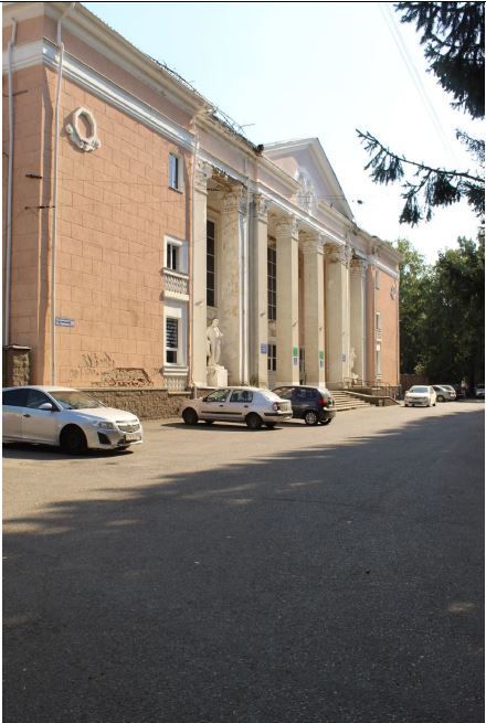 №п/пОписание предмета охраныИзображение1.Местоположение Объекта – здание, расположенное по адресу:Республики Башкортостан, г. Уфа, ул. Ульяновых, 50.2.Объемно-пространственное решение Объекта:трехэтажное оштукатуренное, окрашенное и рустованное здание с подвалом, в плане сложной конфигурации. 3.3.1. Композиционное решение и декоративное убранство Объекта: Северо-западный фасад:ризалиты первой (левая) и третьей (правая) частей фасада;прямоугольные обрамленные оконные проемы первого и второго этажей первой (левой) и третьей (правой) частей фасада; подоконник оконных проемов первого этажа первой (левой) и третьей (правой) частей фасада, состоящий из тяг с полочками;ниши с полубалясинами первого этажа первой (левой) и третьей (правой) частей фасада, расположенные под оконными проемами;ниши с балясинами первой (левой) и третьей (правой) частей фасада, расположенные под оконными проемами второго этажа;прямоугольные оконные проемы третьего этажа первой (левой) и третьей (правой) частей фасада;трехчастные картуши первой (левой) и третьей (правой) частей фасада, состоящие из восьмигранников и фигурных консолей; антаблемент первой (левой) и третьей (правой) частей фасада, состоящий из архитрава, украшенного тягами с полочками, фриза, украшенного тягами с астрагалом, и выступающего карниза из тяг; восьмиколонный портик второй (центральной) части фасада с квадратными колоннами, завершающимися капителями композитного ордера с элементами советского стиля (листья и цветки льна, небольшие картуши с советскими пятиконечными звездами, ионика, стилизованная колоннада);расположенное между колоннами портика второй (центральной) части фасада ограждение из балясин, которое прерывается пьедесталами с фигурами одетого в рубашку, штаны с ремнем, куртку и ботинки мужчины-прораба со стрижкой «кок», держащего в правой руке развернутый чертеж и в левой руке логарифмическую линейку, и одетую в платье с повязанным поверх фартуком женщины-штукатура с покрытыми косынкой волосами, держащей в руке кельму и тару со штукатурным раствором;обрамленные тягами прямоугольные оконные проемы различной конфигурации и центральный дверной проем внутренней части портика второй (центральной) части фасада; прямоугольные ниши с ограждением из полубалясин прямоугольных оконных проемов первого этажа внутренней части портика второй (центральной) части фасада; лепные барельефы прямоугольных оконных проемов первого этажа внутренней части портика второй (центральной) части фасада, украшенные фестонами и отображающие сюжеты клубной работы (музыка - баян, книга – библиотека); барельеф центрального входного проема портика второй (центральной) части фасада, украшенный фестоном и театральной маской; антаблемент портика второй (центральной) части фасада, состоящий из архитрава, украшенного тягами с полочками, фриза, украшенного тягами с астрагалом, выступающего карниза, украшенного тягами и треугольного фронтона, обрамленного тягами;геометрическая ниша тимпана фронтона с барельефом портика второй (центральной) части фасада, украшенная по бокам стилизованными изображениями – контурами многоэтажного дома, дорожного катка, крекинг-установки, трубопровода, и по центру - контуром монумента «Дружбы», а также мужской и женской фигурами, держащими руками установленную на п