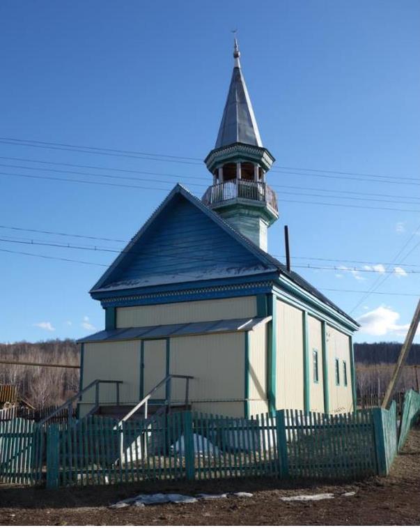 1. Месторасположение Объекта – здания мечети, расположенного по адресу: Республики Башкортостан, Зилаирский район, д. Кадырша, ул. Акмуллы, д.19.2.Объемно-пространственное решение одноэтажного деревянного здания из хвойной древесины на высоком каменном цоколе, в плане сложной конфигурации, состоящего из основного объема, входной группы, михраба и многогранного минарета. 3. Композиционное решение и декоративное убранство северо-восточного фасада Объекта:фриз, украшенный накладными геометрическими узорами;многоступенчатый декорированный геометрическими узорами карниз;треугольный фронтон. Тимпан фронтона обшит горизонтально «вагонкой». Карниз фронтона оформлен накладными геометрическими узорами;минарет, состоящий из трёх частей: 1) подосновы, в плане восьмигранной, завершающейся поясом трапециевидной формы; 2) балкона с деревянным ограждением, над которым расположены оформленные накладными геометрическими узорами фриз и карниз; 3) металлического конуса, в плане восьмигранного, завершающегося двумя шарами разной формы и полумесяцем.4. Композиционное решение и декоративное убранство северо-западного фасада Объекта:три прямоугольных окна;фриз, украшенный накладными геометрическими узорами;многоступенчатый декорированный геометрическими узорами карниз.5.Композиционное решение и декоративное убранство юго-западного фасада Объекта:михраб; фриз, украшенный накладными геометрическими узорами;многоступенчатый декорированный геометрическими узорами карниз;треугольный фронтон михраба. Тимпан фронтона михраба обшит горизонтально «вагонкой». Карниз фронтона оформлен накладными геометрическими узорами;треугольный фронтон, возвышающийся над фасадом. Тимпан фронтона обшит горизонтально «вагонкой». Карниз фронтона оформлен накладными геометрическими узорами.6. Композиционное решение и декоративное убранство юго-восточного фасада Объекта:пять прямоугольных окон;фриз, украшенный накладными геометрическими узорами;многоступенчатый декорированный геометрическими узорами карниз.