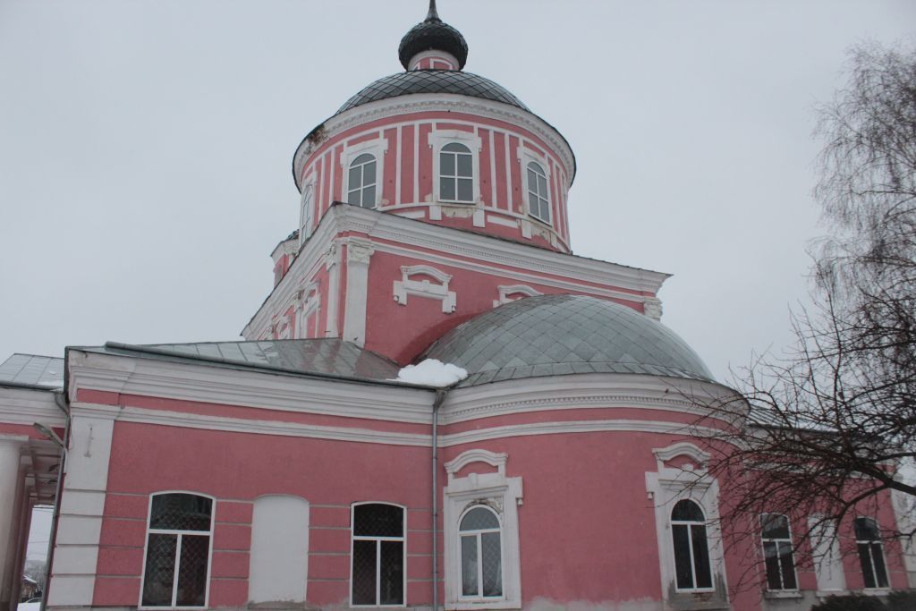 Объемно-пространственная композиция храма; объемно-планировочная композиция храма; композиция и архитектурно-художественное оформление фасадов храма; количество, расположение и форма оконных и дверных проемов; рисунок оконных переплетов; оконное обрамление -профилированные наличники с замковыми камнями; верхняя часть окон украшена ушками, серьгами и рельефными бровками, пилястры с ионическими капителями; сдвоенные полуколонны ионического ордера; тосканские портики с четырьмя парами колонн; треугольные фронтоны; ниши; завершающий фасады узкий гладкий фриз, ограниченный снизу двумя полочками, сверху широким профилированным карнизом; высотные и силуэтные характеристики здания; конструктивное решение завершения объемов храма: световой барабан и колокольня увенчаны куполами, завершенные луковичными главками на глухих барабанах; деревянный резной позолоченный иконостас.Материал стен и архитектурный декор здания - керамический кирпич. Стены оштукатурены и окрашены в розовый цвет, архитектурные детали оштукатурены и окрашены в белый цвет.