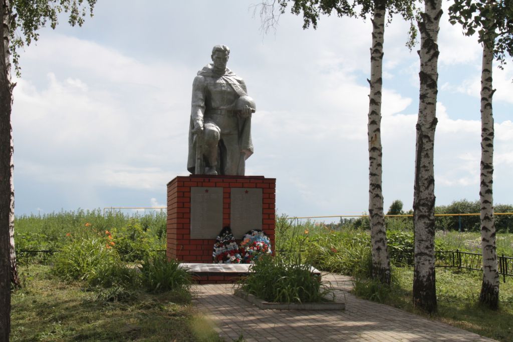 Объемно-пространственная композиция памятника, включая скульптуру «Советский воин» (коленопреклонённый воин с каской и автоматом в руках), установленную на массивном постаменте, фамилиипогибших советских воинов, расположенные на мемориальных досках и мемориальных плитах, выполненных из натурального камня.