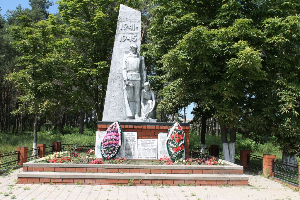 Имеющееся захоронение, существующее местоположение, текст мемориальной надписи и фамилии погибших советских воинов, а также фамилии воинов земляков, не вернувшихся с фронтов Великой Отечественной войны, высеченные на мемориальных плитах.