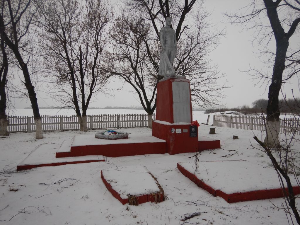 Братская могила советских воинов, погибших в боях с фашистскими захватчиками в 1943 г. Захоронено 106 человек, имена установлены. Скульптура советского воина