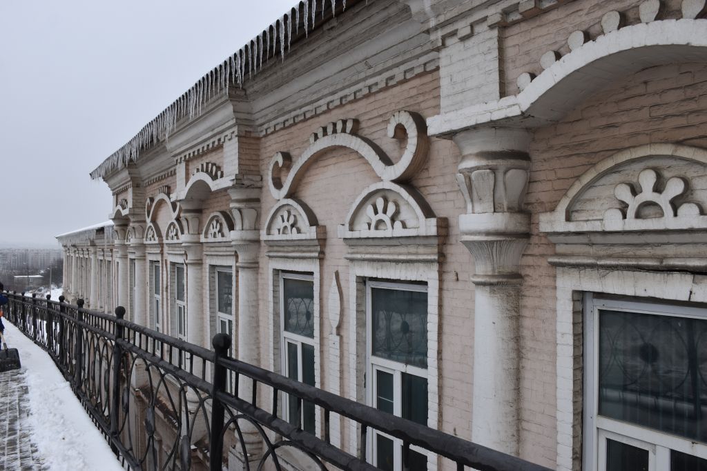 Объёмно-пространственная композиция каменного, расположенного на рельефе двухэтажного, с цокольным этажом под частью (правой половины) здания, прямоугольного в плане, расположение и форма оконных и дверных проёмов, высотные отметки по венчающему карнизу.Габариты и конфигурация двухскатной над левой частью здания и трехскатной — над правой частью здания крыши, высотные отметки по конькам.Высотные и силуэтные характеристики здания.Композиция и архитектурно — художественное оформление фасадов: цоколь правой части здания, выделенный большей толщиной стены и отделенный от фасада обратным четвертным валом; междуэтажный пояс в виде двух профилированных полочек и валика между ними; рельефный фриз и широкий профилированный карниз, завершающий фасады западной части здания, раскрепованные над пилястрами и полуколоннами; фриз с сухариками и широкий многообломный карниз, завершающий фасады восточной части здания, раскрепованные по небольшим портикам; гладкие пилястры в уровне 1-го и 2-го этажей дворового фасада, 2-го этажа западного торцевого фасада, на восточном торцевом фасаде; пилястры, декорированные двумя узкими вертикальными нишкам с прямоугольной накладной доской «конвертиком» в верхней чести пилястр на 1-м этаже главного и западного торцевого фасадов; круглые полуколонны 2-го этажа западной части главного фасада; круглые полуколонныс декорированными капителями, разбивающие восточную часть главного фасада на прясла в 1 и 2 оконных оси, портики, завершающие прясла в 1 оконную ось, с арочным изгибом в нижней части, с нишкой в поле портика, с декоративным орнаментом в поле нишки; двойные подоконные доски под оконными проёмами дворового фасада; подоконные доски, объединяющие крайние проёмы 2-го этажазападного торцевого фасада и проёмы 2-го этажа главного фасада западной части здания; подоконные доски оконных проёмов 1-го этажа западного торцевого фасада и 1-го этажа главного фасада западной части здания, декорированные зубчиками и опирающиеся на кронштейны, с прямоугольной накладной доской «конвертиком» между кронштейнами; рамочные наличники с прямым сандриком.обрамляющие оконные проёмы 2-го этажа главного фасада западной части здания и 2-го этажа западного торцевого фасада; рамочные наличники с прямым сандриком, декорированным зубчиками и высоким замковым камнем, обрамляющие оконные проёмы 1-го этажа западного торцевого фасада и 1-го этажа главного фасада западной части здания; рамочные наличники с прямоугольнымсандриком несложного профиля с арочными нишами и декоративным рельефом над ними, обрамляющие оконные проёмы главного фасада восточной части здания; фигурные дуги с декором в простенках восточной части главного фасада; декоративные накладные доски в виде свечи в простенках главного фасада здания;Материал и характер отделки фасадных поверхностей (кирпичная кладка, окраска по кирпичу).Пространственно-планировочная структура интерьеров здания в пределах капитальных стен и перекрытий начала ХХ века.Местоположение, конструкция и декоративное оформление двухмаршевой лестницы начала ХХ века с ажурным ограждением из литого чугуна.