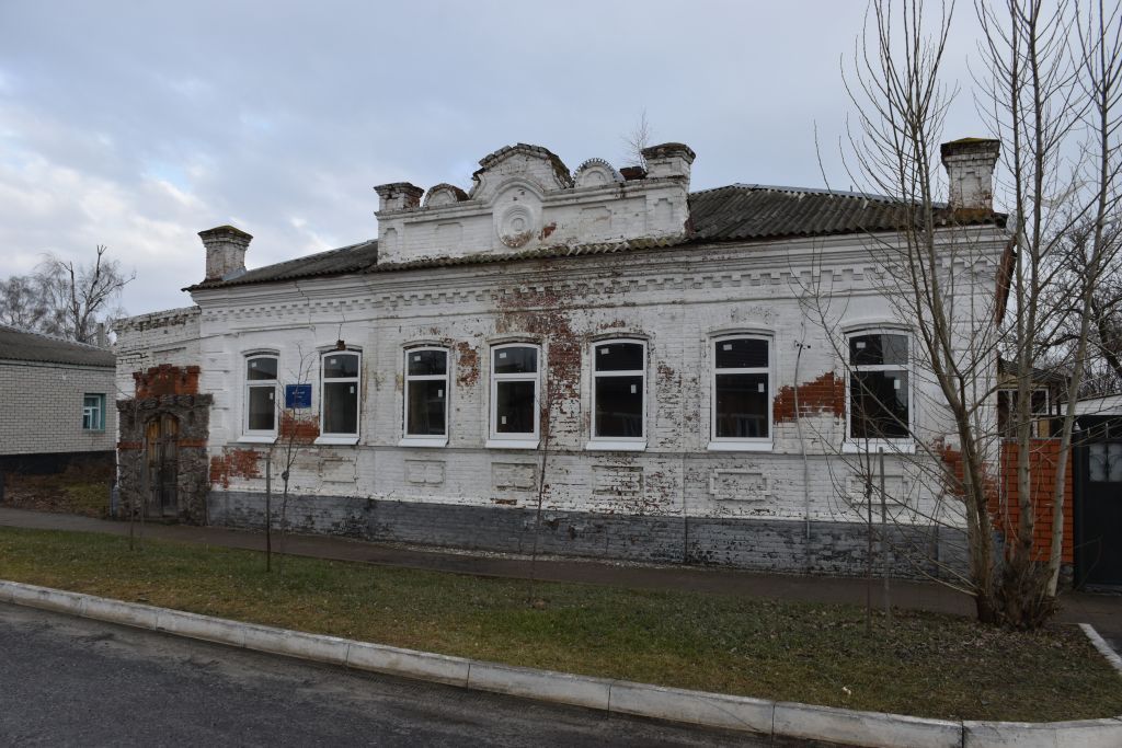 Объёмно-пространственная композиция одноэтажного, каменного здания; высотные и силуэтные характеристики здания; габариты и конфигурация крыши; количество, расположение и форма оконных (лучковой формы) и дверных проёмов.Композиция и архитектурно - художественное оформление главного и боковых фасадов здания: цоколь, выделенный большей толщиной стены; подоконный пояс, ограниченный сверху полочкой, проходящей по нижней кромке окон, с фигурными нишками в поле пояса по осям окон; фриз, ограниченный снизу полочками, сверху аркатурным поясом и профилированным карнизом; фигурный аттик, акцентирующий три центральных оконных оси главного фасада: поле аттика украшено концентрическими окружностями и фланкировано столбиками с фигурными нишами, в верхней части аттик декорирован тремя полуокружностями с рельефным рисунком; муфтированные пилястры, закрепляющие углы главного фасада здания; высокие тумбы, украшенные рельефными нишами и карнизами с сухариками, завершающие пилястры; рамочные оконные наличники; рустованная каменная стена веранды; гладкие пилястры, закрепляющие углы боковых фасадов здания.Материал и характер отделки фасадных поверхностей - гладкая штукатурка с окраской.Колористическое решение фасадов - светлый (белый) цвет для стен и архитектурного декора, серый для цоколя.