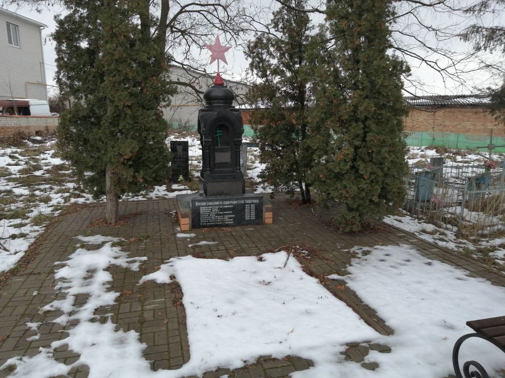 Имеющееся захоронение, существующее местоположение, текст мемориальной надписи, фамилии жертв немецко-фашистских захватчиков, высеченные на мемориальной плите.