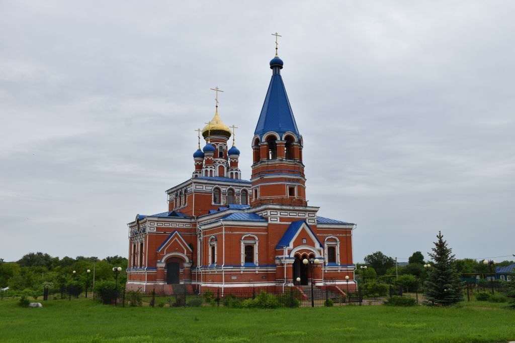 Местоположение объекта, являющегося высотной доминантой в застройке улицы Подгорной.Объёмно-пространственная композиция каменного крестово-купольного пятиглавого здания храма, с восьмигранным центральным барабаном, двухсветным высоким четвериком храма, трёхъярусной колокольней типа «восьмерик на четверике», прямоугольной трапезной и одночастной двухсоставной апсидой (прямоугольной в месте примыкания к четверику храма и полукруглой в завершении), высоким западным притвором, включая массивное крыльцо западного притвора, высотные отметки по завершению фасадов, количество, форма и расположение оконных и дверных проёмов (в том числе заложенных).Габариты и конфигурация крыш, в том числе луковичной формы глава центрального барабана, четыре главки луковичной формы боковых барабанов четверика храма, шатровое завершение колокольни с луковичной главкой на небольшом барабанчике, четырёхскатная крыша четверика храма, трёхскатные крыши притворов, многоскатная крыша апсиды, высотные отметки по подкрестным яблокам и конькам крыш.Материал покрытия кровли и куполов—металл.Высотные и силуэтные характеристики здания.Композиция и архитектурно-художественное оформление фасадов: высокий цоколь, выделенный большей толщиной стены; профилированная тяга, проходящая по верхнему краю цоколя; пояс, в нижней части которого проходит профилированная полочка, в верхней — профилированная и ступенчатая полочки; профилированная подоконная полочка, проходящая по нижнему краю оконных проёмов; фриз, состоящий из двух частей: нижней—широкой и гладкой, ограниченной снизу и сверху полочкой, верхней—более узкой, разделенной на ниши, в которых размещены рельефно выступающие прямоугольники на трапезной, северном и южном притворах, центральной части западного притвора (1-й ярус колокольни); гладкий фриз, ограниченный снизу и сверху профилированными полочками на апсиде, боковых крыльях западного притвора, 2-м ярусе колокольни; фриз, разделенный на ниши, в которых размещены рельефно выступающие прямоугольники, ограниченный снизу ступенчатой полочкой и профилированной тягой, сверху—профилированной полочкой на четверике храма; раскрепованный многопрофильный венчающий карниз с подвышенными нишками-киотами в центральной части северного и южного притворов, обрамленными полуколонками и подчеркнутыми снизу профилированными полочками; аркатурные пояса, декорирующие основание и верхнюю частьцентрального и боковых барабанов четверика храма; профилированный карниз, завершающий барабаны храма; гладкие пилястры на углах северного и южного притворов, четверика храма, западного притвора; ниши с арочным завершением апсиды с обрамлением в виде архивольтов на импостах, опирающихся на полуколонки; профилированное обрамление оконных проёмов западногопритвора, фланкированное полуколонками с дыньками, профилированным сандриком между ними, завершённое профилированным кокошником с килевидным завершением; профилированное обрамление оконных проёмов трапезной, северного и южного притворов, фланкированное полуколонками с дыньками, профилированным сандриком с замковым камнем в виде капителиколонны, завершённое парными арочками с килевидным завершением на полуколонках; полуколонки с профилированным архивольтом на импостах, обрамляющие оконн