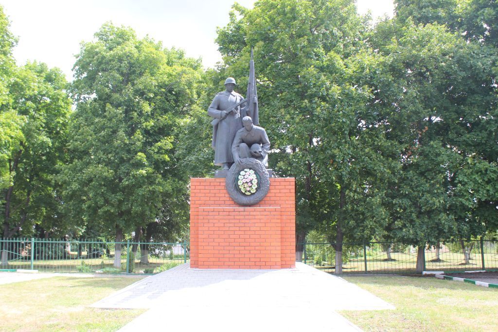 Братская могила советских воинов, погибших в боях в период оборонительной операции в Курской битве. Похоронено 944 воина. Скульптура двух воинов