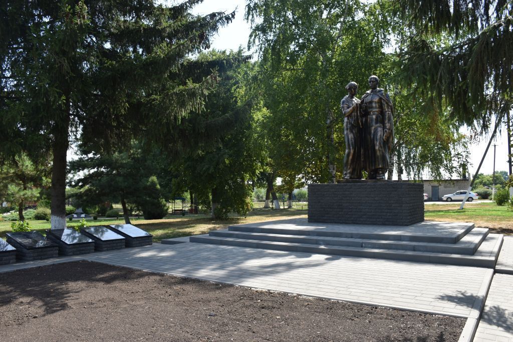 Имеющееся захоронение, существующее местоположение, текст мемориальной надписи и фамилии воинов земляков, не вернувшихся с фронтов Великой отечественной войны, высеченные на мемориальных плитах.