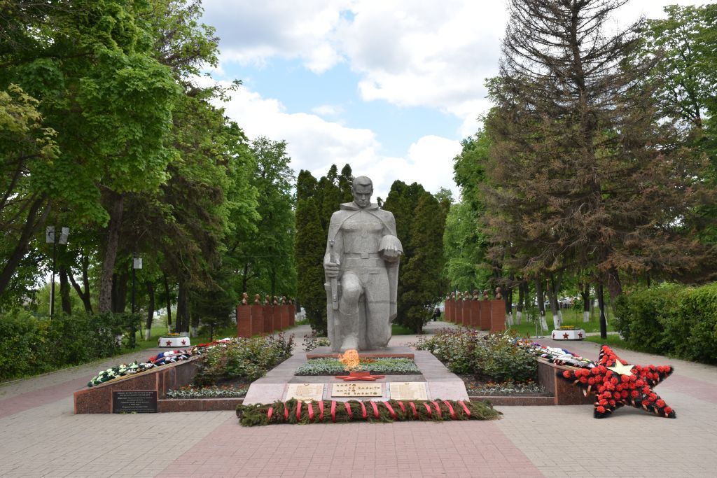 Братская могила советских воинов, погибших в боях с фашистскими захватчиками в 1943 году. Захоронено 77 человек, имена 21 человека установлены. Скульптура советского воина. Вечный огонь