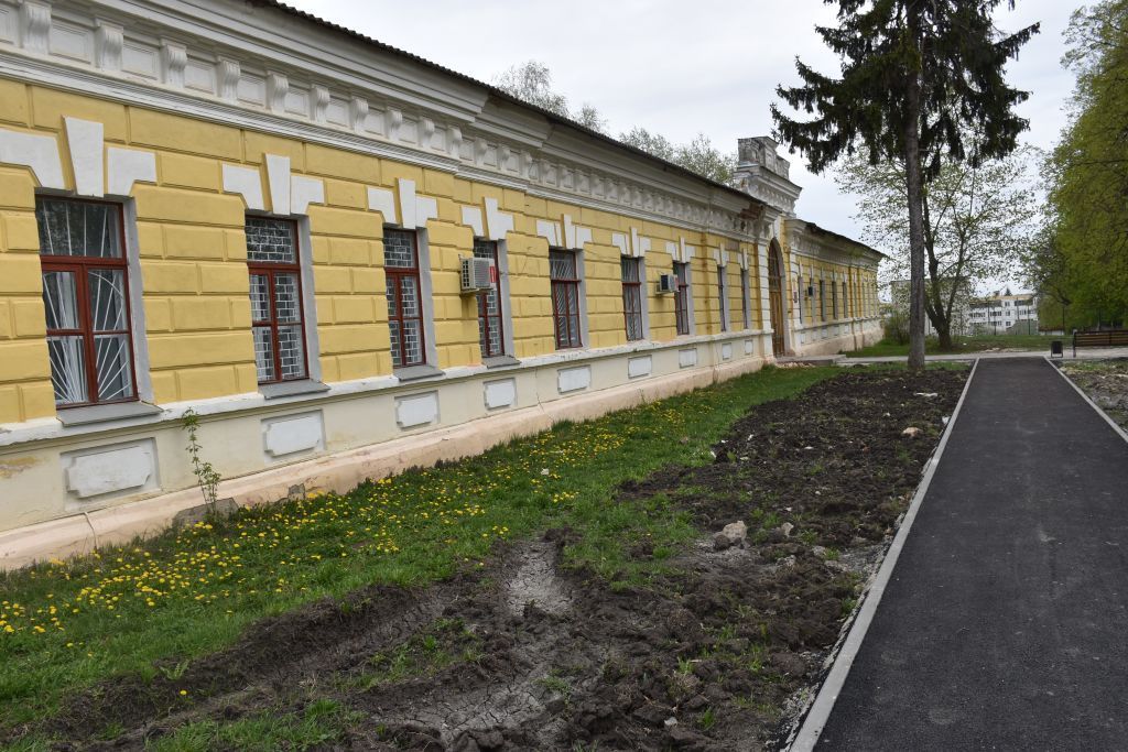 Объемно-планировочное решение здания; объемно-пространственная композиция одноэтажного, «Ш» - образного в плане, каменного здания; количество, расположение и форма оконных и дверных проемов.Композиция и архитектурно – художественное оформление фасадов: Главный вход, с арочной застекленной фрамугой, фланкированный широкими рустованными пилястрами и крупным веерным замком над проемом. Мощная аттиковая стеночка, разделенная по горизонтали на две части: в нижней части повторяется антаблемент главного фасада, в верхней – раскрепованная стеночка, декорированная нишками, ширинками и пилястрами, фланкирующими центральный ризалит аттика завершающая главный вход. Аттиковые стеночки, центральную часть которых фланкируют висячие лопатки с элементами городчатого фриза завершающие входы дворового фасада. Пояс, пропущенный под окнами сверху ограничен профилированной полочкой, по осям окон – нишки с декоративным рельефным заполнением в виде прямоугольных досок с закругленными краями (на главном и боковых уличных фасадах), и объемных элементов, лицевая сторона которых отесана на 4 грани (на дворовом фасаде). Клинчатые перемычки с крупными замковыми камнями оформляющие оконные и дверные проемы. Широкая полочка, пропущенная на уровне ½ высоты этажа декорирующая стены боковых уличных фасадов. Стены главного фасада рустованы квадровым рустом и раскрепованны за счет небольших ризалитов. Городчатый фриз и профилированный карниз завершают боковые уличные и дворовый фасады; широкий фриз с кронштейнами в форме волют и ширинками, снизу фланкированный профилированными полочками, сверху- широким карнизом сложного профиля завершает главный фасад.Высотные и силуэтные характеристики здания; Материал стен и декора – керамический кирпич. Стены главного и боковых уличных фасадов оштукатурены и окрашены в желтый (стены), розовый(цоколь) и белый (архитектурные детали) цвета.Конфигурация, размеры, декор и материал дверного заполнения центрального входа здания.Сложившаяся территория участка в градостроительной ситуации города.