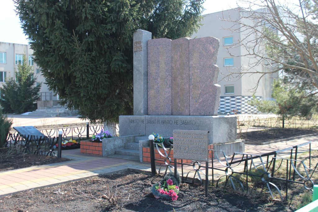Братская могила советских воинов, погибших в боях с фашистскими захватчиками в 1943 году. Захоронено 176 человек, имена установлены. Скульптура двух советских воинов