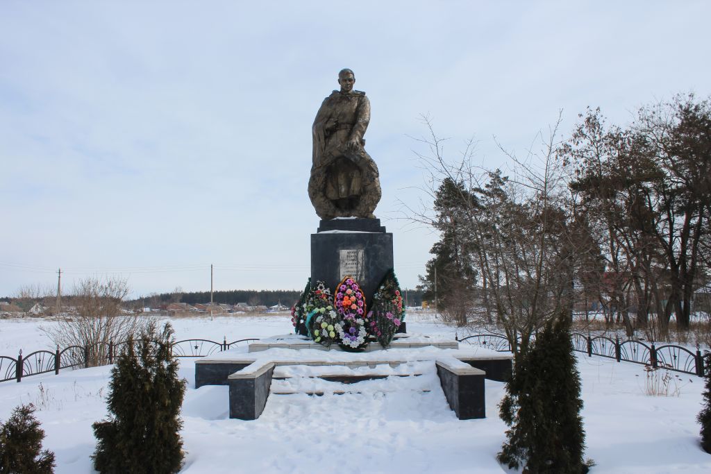 Братская могила советских воинов, погибших в боях с фашистскими захватчиками в мае 1942 года. Похоронено 10 воинов, имена установлены. Скульптура воина