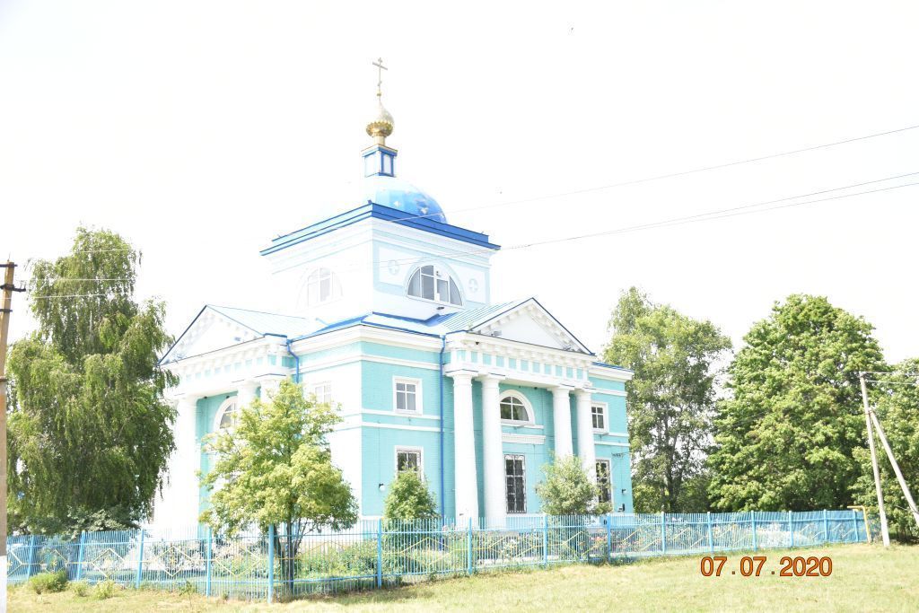 Местоположение объекта на северной окраине села Ольшанка-Первая с отступом от красной линии улицы Владимирская, его роль высотной доминанты в застройке села.Объёмно-пространственная композиция каменного (кирпичного), квадратного в плане четырехстолпного одноглавого храма без колокольни, на высоком цоколе, с массивным двухсветным основным объёмом (четвериком) с четырёхколонными портиками тосканского ордера на каждом фасаде, с четырёхгранным световым четвериком-барабаном и небольшим кубическим постаментом под куполом, высотные отметки по завершению фасадов, количество, форма и расположение оконных (прямоугольных, квадратных, полуциркульных) и дверных (прямоугольных) проёмов (в том числе заложенных).Габариты и конфигурация крыш, в том числе четырёхскатная крыша четверика храма и четверика-барабана, двухскатные покрытия фронтонов колонных портиков, полусферический купол храма с глухим четырёхгранным барабанчиком, луковичной главкой на высокой ножке с яблоком и крестом, высотные отметки по конькам крыш и подкрестному яблоку.Материал и характер покрытия кровли — листовой металл, материал и характер покрытия купола — металл с декоративными звездами, в том числе с ромбическим узором, материал и характер покрытия главки металл с нитридтитановым покрытием и ромбическим узором.Высотные и силуэтные характеристики здания.Композиция и архитектурно-художественное оформление фасадов: цоколь, выделенный большей толщиной стены; широкая сплошная подоконная полочка, проходящая под оконными проёмами первого света четверика храма; пояс между оконными проёмами 1-го и 2-го света четверика храма, ограниченный снизу широким простым пояском, сверху — сплошной подоконной полочкой, проходящей под оконными проёмами 2-го света четверика; гладкий фриз, ограниченный снизу сдвоенными поясками, сверху — сдвоенными поясками и ступенчатым венчающим карнизом; гладкий фриз четверика-барабана, ограниченный снизу ступенчатым пояском, сверху — ступенчатым венчающим карнизом с сухариками; 4 гладких лопатки, расположенные на фасадах четверика по осям колонн портиков; четырёхколонные портики тосканского ордера с полным антаблементом с триглифами, регулами и мутулами, завершённые треугольными фронтонами с гладкими тимпанами и косыми карнизами с кронштейнами; накладные доски с криволинейными сторонами с круглой нишкой и крестом внутри вокруг полуциркульных оконных проёмов четверика-барабана; короткие (на одну ось) профилированные карнизы с зубчиками над окнами-фрамугами по осям дверных проёмов западного, северного и южного фасадов; рамочное обрамление оконных проёмов.Материал стен — кирпич.Материал и характер отделки фасадных поверхностей (окраска по кирпичу).Пространственно-планировочная структура интерьеров здания в пределах капитальных стен, четырёх опорных столбов и перекрытий, включая сводчатые.Конструкция и материал (кирпич) капитальных стен, опорных столбов и перекрытий, включая сводчатые.