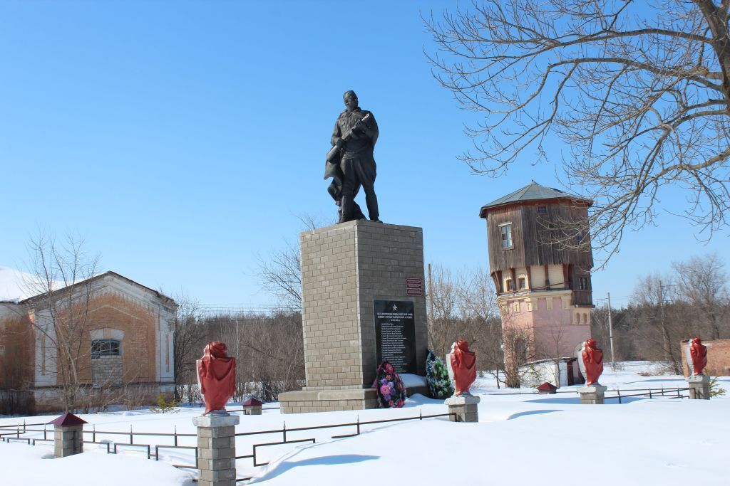 Братская могила советских воинов, погибших в боях с фашистскими захватчиками в 1943 году. Захоронено 80 человек, имена установлены. Скульптура советского воина