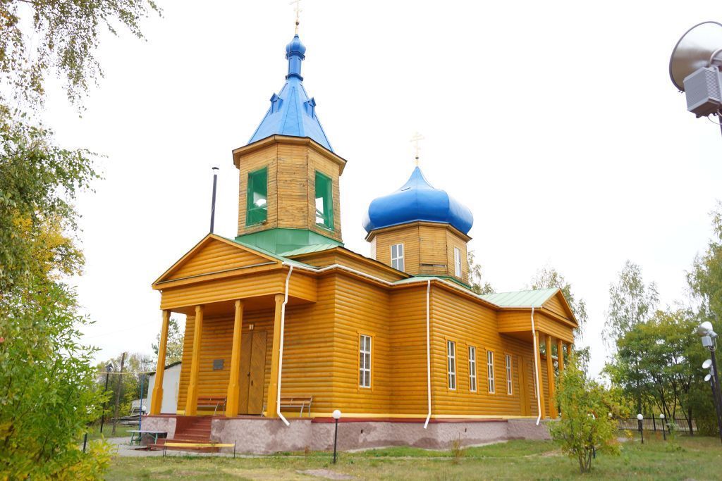 Объёмно - пространственная композиция деревянного на каменном основании одноглавого, крестообразного в плане храма типа «восьмерик на четверике», с апсидой трехчастной формы (прямоугольная центральная часть и пониженными по высоте прямоугольными в плане боковыми частями), с прямоугольной трапезной с притвором, с восьмигранной колокольней на кубическом основании, четырехколонные портики с фронтонами северного, южного и западного притворов, высотные отметки по завершению фасадов, количество, расположение и форма оконных и дверных проёмов.Габариты и конфигурация крыш, в том числе широкий граненый луковичный купол с полицей светового барабана, граненый шатер колокольни с одним ярусом «слухов», полицей и главкой на тонкой шейке, двухскатные крыши трапезной и портиков, усеченная вальмовая крыша апсиды, высотные отметки по подкрестным яблокам и конькам.Материал покрытия кровли и куполов – металл, покрытие купола и шатра «в шашку».Композиция и архитектурно-художественное оформление фасадов: кирпичный цоколь, выделенный большей толщиной стены; деревянные рамочные наличники, венчающие карнизы светового барабана и яруса звона колокольни.Высотные и силуэтные характеристики здания.Материал и характер отделки фасадных поверхностей последней четверти ХIХ века (кирпичный цоколь, бревенчатый сруб, обшивка).Пространственно-планировочная структура интерьеров здания в пределах капитальных стен и перекрытий последней четверти ХIХ века, включая сводчатые.Конструкция и материал капитальных стен и перекрытий последней четверти ХIХ века, включая сводчатые.Сохранившиеся деревянные филенчатые внутренние двери, с остеклением створок и остекленной фрамугой, характер оформления, рисунок расстекловки. Металлические решетки в окнах нижнего яруса храма, характер декоративно-художественного решения.