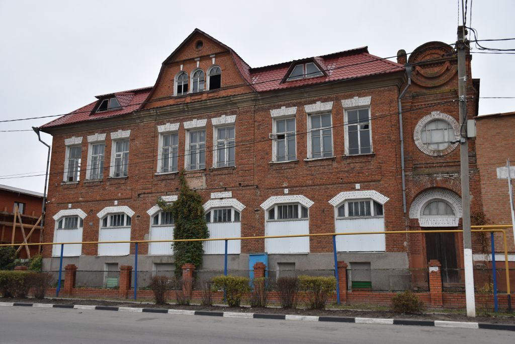 Объемно-пространственная композиция двухэтажного кирпичного здания с подвалом и чердачным помещением мансардного типа, прямоугольного в плане, с пристроенным объемом лестничной клетки;Композиция и архитектурно – художественное оформление фасадов включая: полочку, отделяющую цокольный этаж; междуэтажный пояс, декорированный накладными досками; широкий венчающий ступенчатый карниз; плоский ризалит в три оконных оси в центре главного фасада, фланкированный рустованными пилястрами и завершенный небольшим треугольным фронтоном; рельефный концентрический аттик, фланкированный фигурными столбиками, завершающий объем лестничной клетки; клинчатые перемычки прямоугольных и трапециевидных оконных проёмов с выделенными замковыми камнями; накладки над центральной частью трапециевидных оконных проёмов главного фасада; арочные перемычки с выделенными замковыми камнями.Конфигурация крыши и высотные отметки по коньку;Высотные и силуэтные характеристики здания;Количество, форма и расположение дверных и оконных проёмов, в том числе полукруглый и концентрический круглый оконные проёмы лестничной клетки;Материал стен и декора - керамический кирпич.