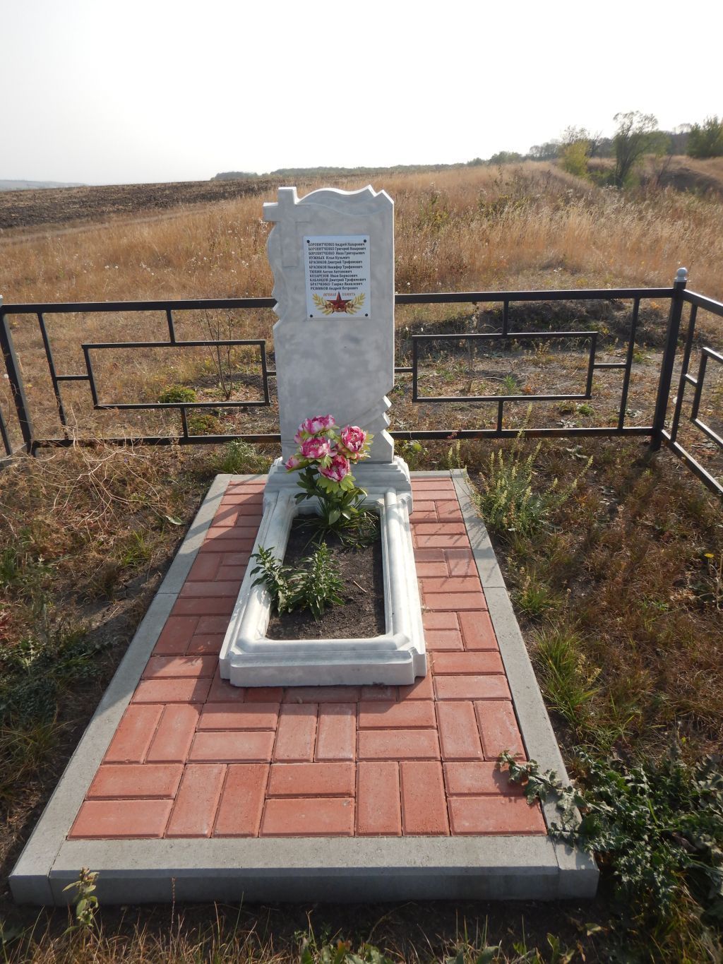 Имеющееся захоронение, существующее местоположение, текст мемориальной надписи и фамилии погибших советских воинов, а также фамилии воинов земляков, не вернувшихся с фронтов Великой Отечественной войны, высеченные на мемориальных плитах.
