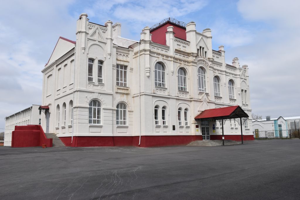 Объёмно-пространственная и объёмно-планировочная композиция двухэтажного кирпичного здания с повышенным центральным ризалитом и плоскими боковыми ризалитами, в плане близкого к «Т»-образной форме. Конфигурация крыши и высотные отметки по коньку, в том числе высокая пирамидальная крыша со срезанным верхом над вестибюльной группой помещений, материал кровельного покрытия - металл;Композиция и архитектурно-художественное оформление фасадов включая: центральный ризалит главного фасада, разбитый пилястрами на 5 прясел и два боковых; рельеф, имитирующий фронтон над главным входом; высокий аттик, прорезанный вертикальными слуховыми окнами в прямоугольном щипце; многогранные башенки, завершающие пилястры ризалитов; филенчатые ниши в ризалитах, подоконные ниши с прямоугольными накладками и ширинки с рельефом в форме буквы «Х»; бровки над спаренными узкими окнами, рамочное обрамление оконных проёмов в главном ризалите; треугольные фигуры, сухарики и рустовка стен в боковых ризалитах; лучковые и клинчатые перемычки, веерное завершение крупных арочных проёмов с крупным замковым камнем; цоколь, выделенный большей толщиной стены отделен от 1-го этажа широкой полочкой; междуэтажный профилированный карниз на главном и частично торцевых фасадах; широкий фриз ограниченный снизу и сверху полочками и разделенный в нижней трети на 2 неравные по ширине части, заполненные ширинками в нижней части и нишами с лучковым верхом в верхней; профилированный карниз с сухариками и треугольные фронтоны в левой части боковых фасадов; ступенчатый карниз на дворовом фасаде;Количество, форма и расположение дверных проёмов;Количество, форма и расположение оконных проёмов: сдвоенные узкие арочные; сдвоенные узкие лучковые; арочные и лучковые проёмы разных размеров; прямоугольные проёмы; большое трехчастное окно с лучковой перемычкой лестничной клетки;Материал – дерево и оригинальная расстекловка всех оконных проёмов;Высотные и силуэтные характеристики здания;Материал стен и декора - керамический кирпич;Колористическое решение фасадов – серый цвет для стен, красно-коричневый для цоколя, белый – для полочки над цоколем;Первоначальные лестницы (двухмаршевая лестница в торце западного фасада, парадная трехмаршевая лестница, лестница в вестибюле) с металлическими ограждениями, ограждение в простенках вестибюля;Декоративное оформление портала сцены, лепные розетки, карнизы, кронштейны в интерьерах, керамическая плитка полов, изготовленная в Харькове «Товариществом Бергенгеймъ».